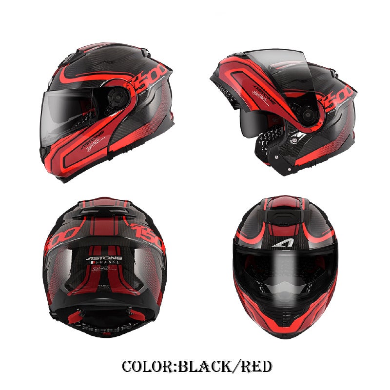 また、高級軽量素材と個性的なカラーリングで人気のアストンカーボンフルフェイスヘルメット