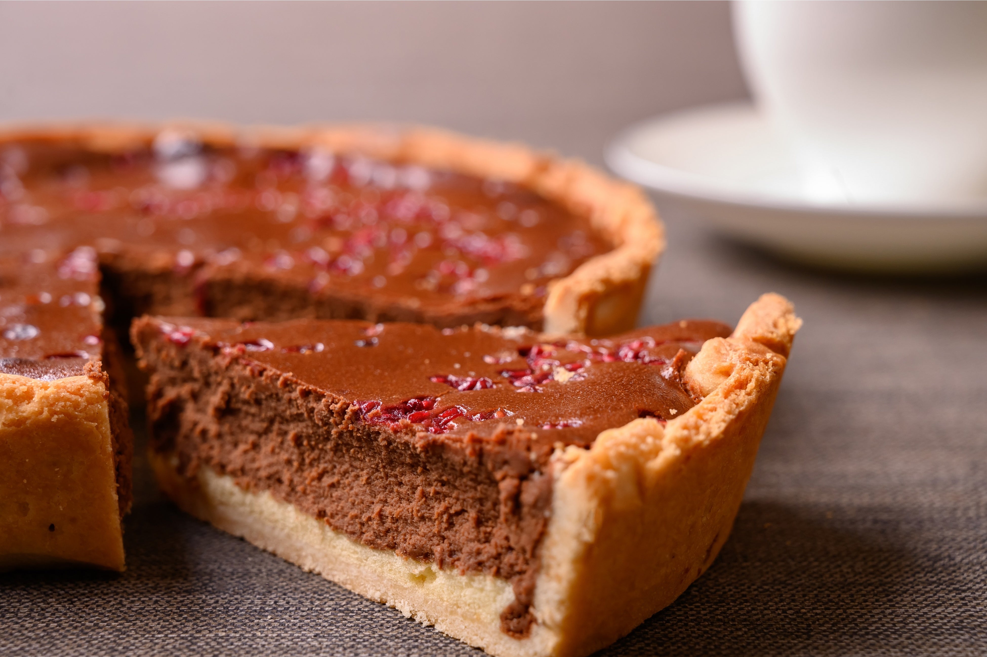 そこで2月はバレンタインにちなみ、プレーンの生地にチョコレートを練り込み、アクセントにラズベリーを使用した「チョコレート チーズケーキ」をご用意。