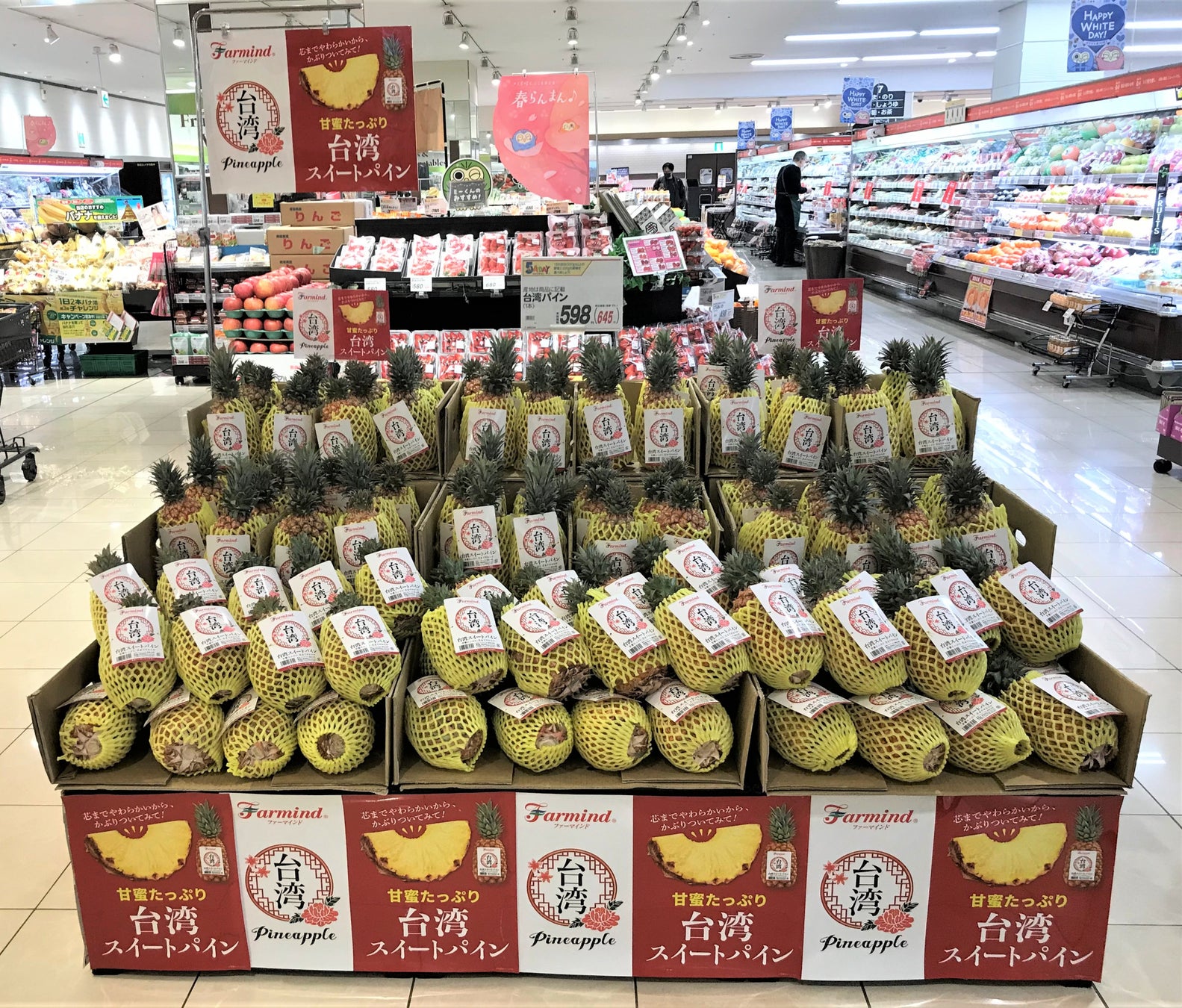 ファーマインドは、台湾の行政機関と提携し現地企業と連携することで、台湾においても青果流通を支えるコールドチェーンの構築を推進しています。「台湾パイン」の日本での販売が3年目となる今年は、さらに高品質を保つ安定したコールドチェーンを構築できた年となりました。全国のスーパー・コンビニで展開する「台湾パイン」を、より一層、鮮度よくおいしい状態でお届けすることにより、今季の販売期間(3月~6月)の出荷数で前年同期比の170%をめざしています。