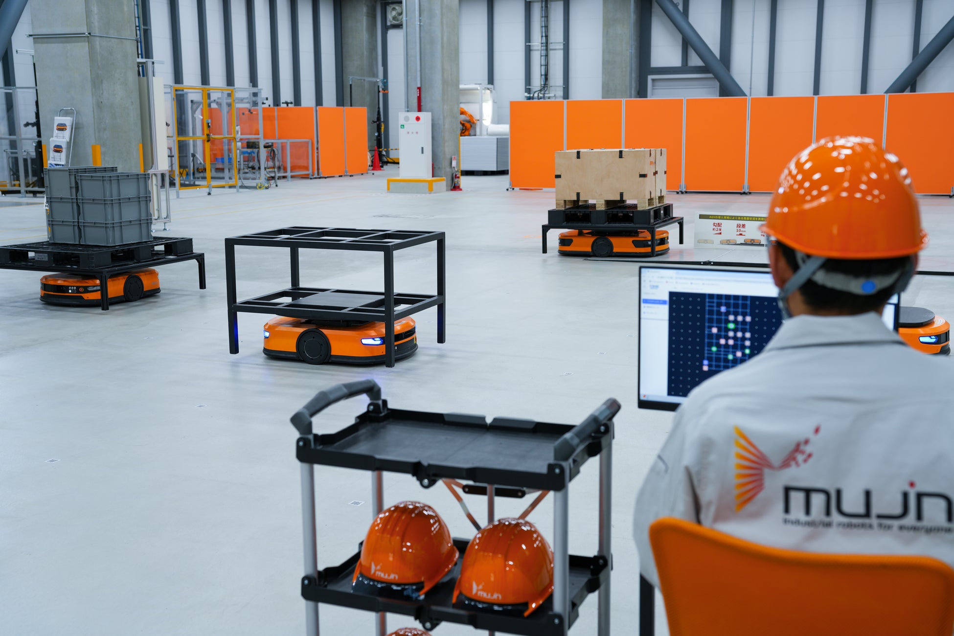 そこでMujinは、汎用的な知能ロボット、非固定設備であるAGV、冗長性のある保管ロボット、その他機器を組み合わせ、独自開発した自動化知能ソフトウェアで各機器を統合制御することで、従来の自動化常識に囚われない次世代自動化トータルソリューションを実現しています。
