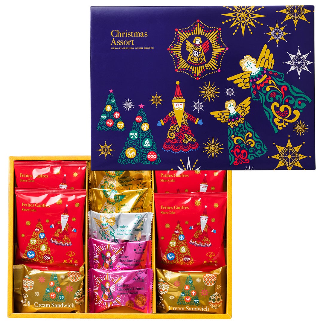 上野風月堂を代表する伝統菓子「ゴーフル」を小さなサイズに仕上げた「プティゴーフル」のクリスマス限定味『プティゴーフル ショートケーキ味』や、サクサクのゴーフルのウエハースをクランチにして、ミルク、ホワイト、ストロベリーの3種のチョコレートで固めた『ゴーフル チョコレートクランチ』、人気の『クリームサンド クランベリー』など、クリスマス特製のパッケージに包まれたこの時期だけの特別な商品がラインナップ。