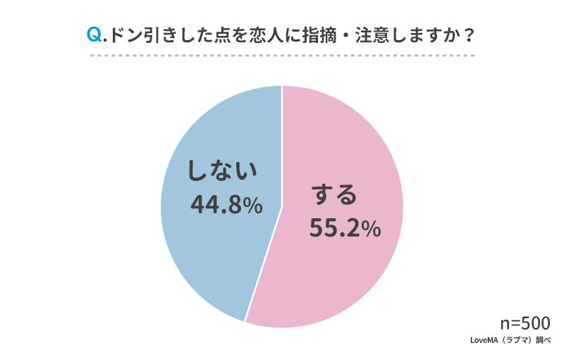 「あなたはドン引きした点を恋人に指摘・注意しますか?」と聞いたところ、回答は以下のようになりました。