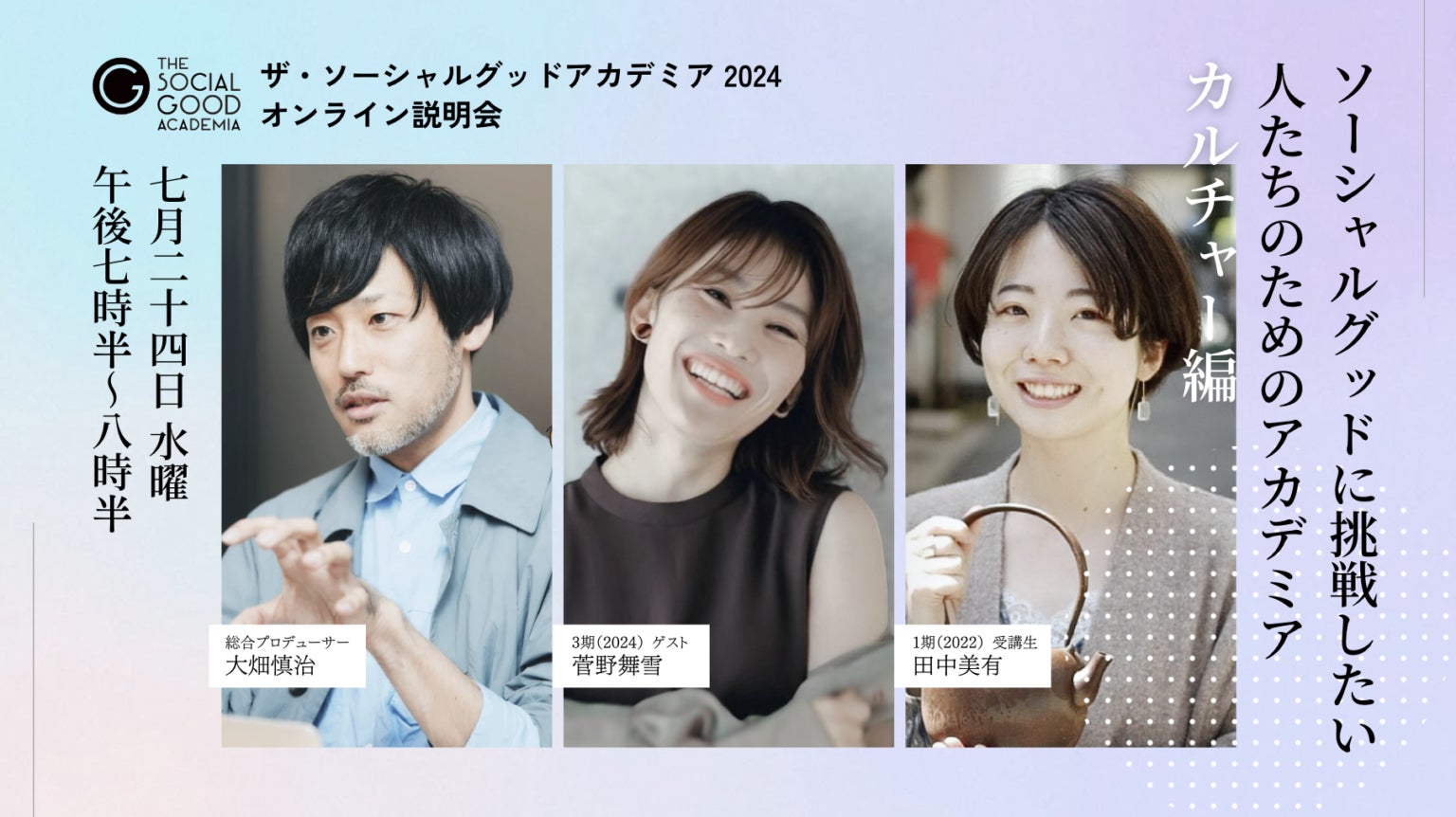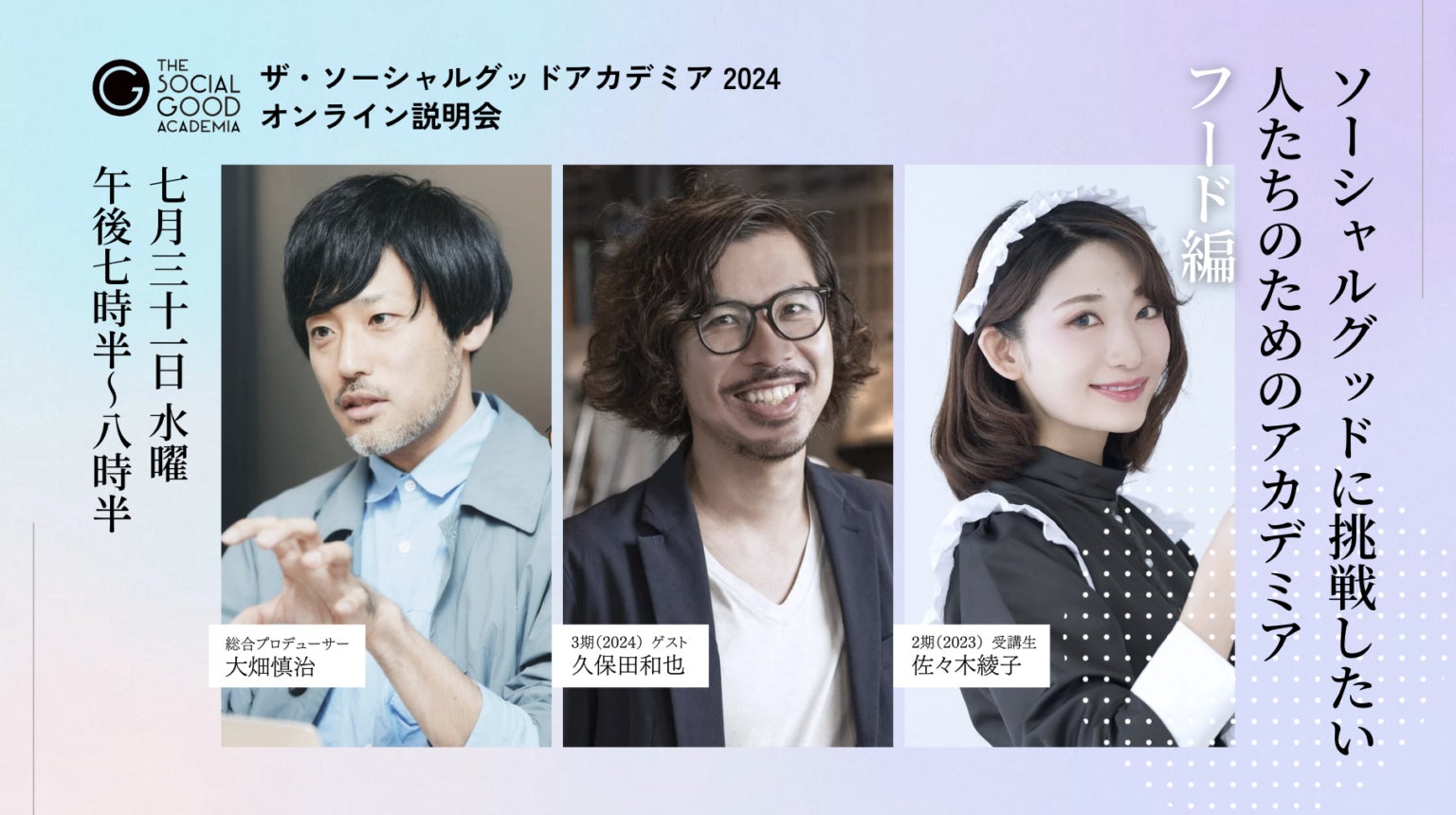 ザ・ソーシャルグッドアカデミア 2024 オンライン説明会開催 7/24(水)「カルチャー編 」・7/31(水)「食(フード)編」