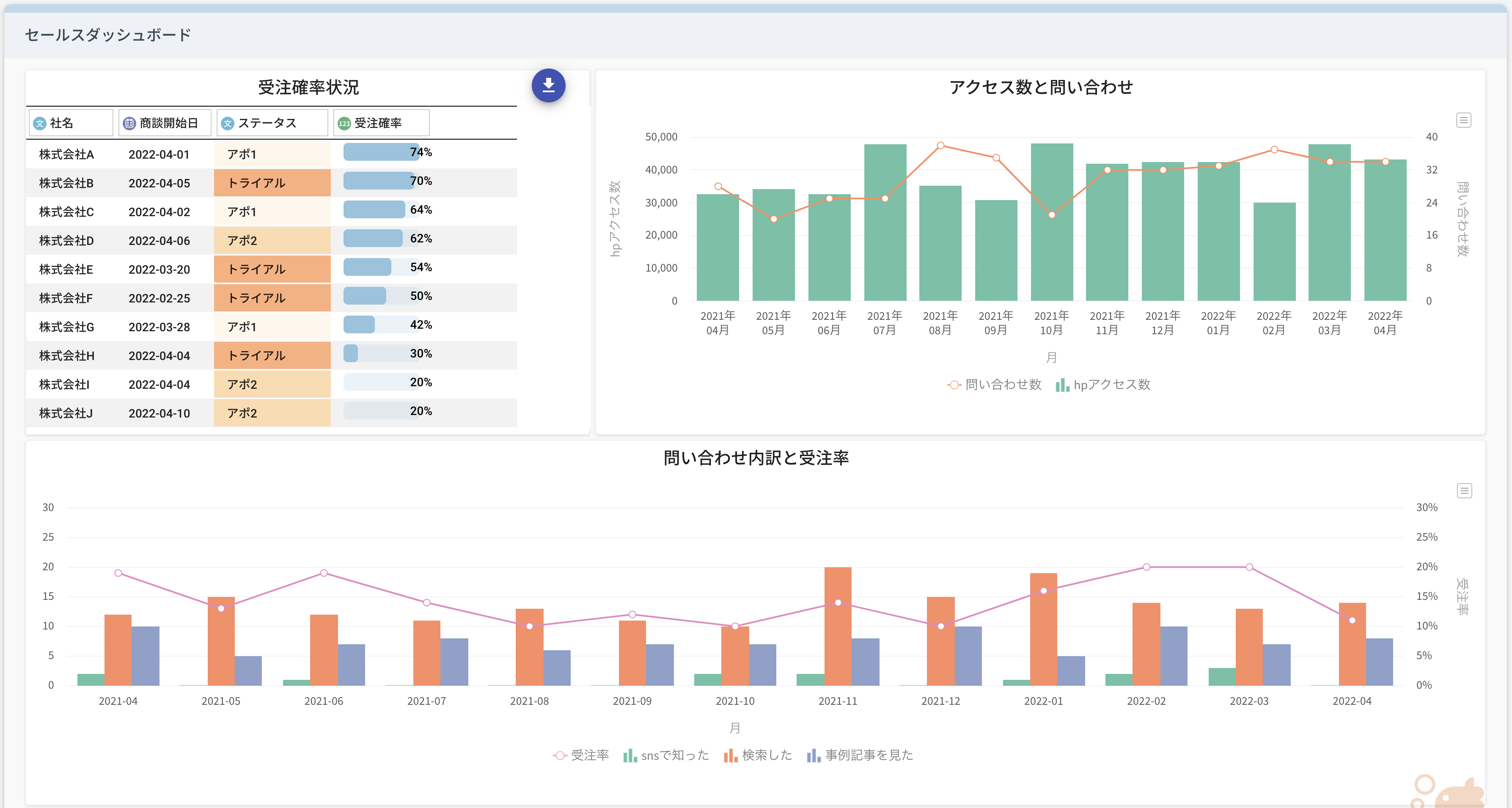 セールスフォースにも分析機能は搭載されておりますが、より深い活用、例えば