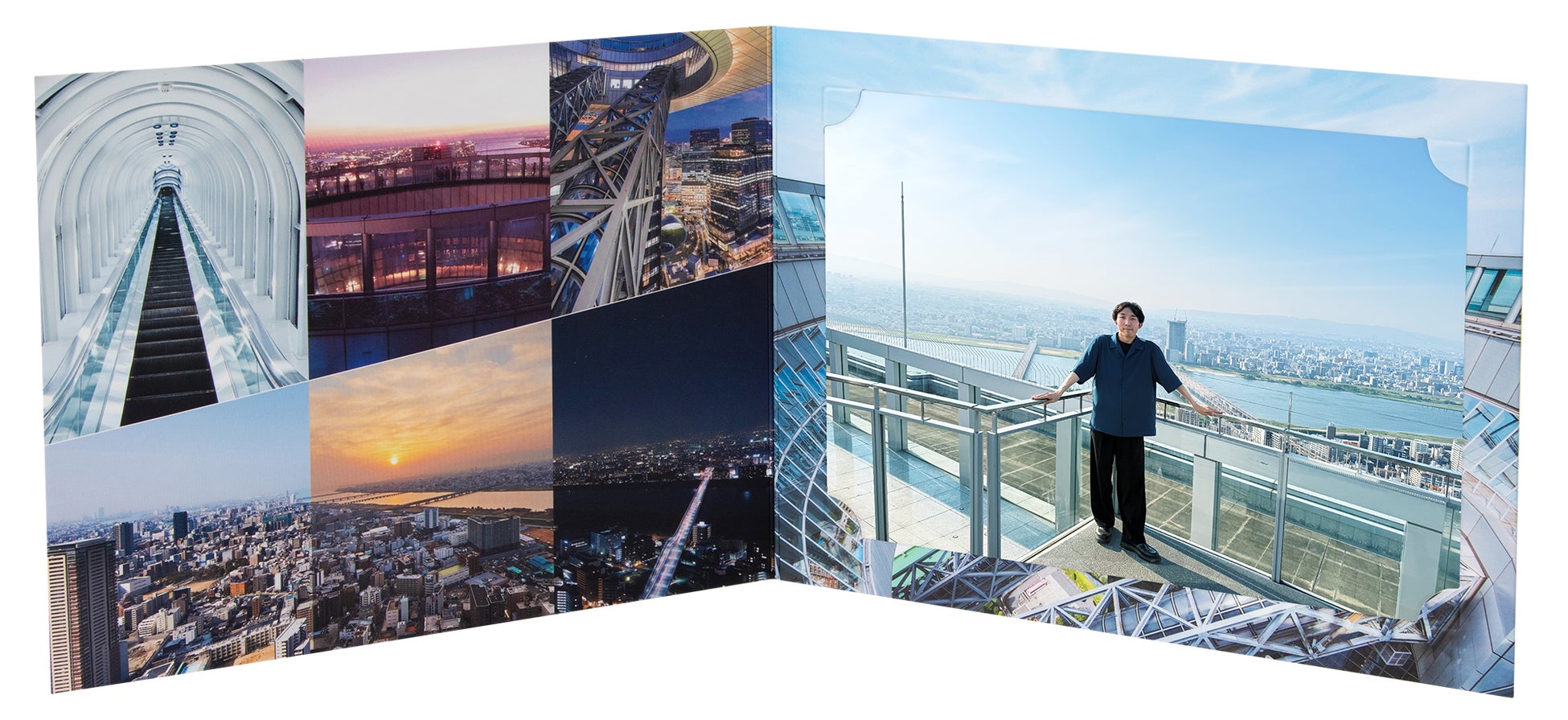 大阪・梅田の新都心「新梅田シティ」の中核施設であり、ランドマークの一つでもある「梅田スカイビル」。最上部に位置する「空中庭園展望台」は、地上約170mの高さから大阪の街並みを360度見渡せる屋上開放型の展望台です。空中庭園展望台を訪れたお客さまに思い出に残るものをお持ち帰りいただきたいという想いから、新たにフォトサービスの運営を始めます。