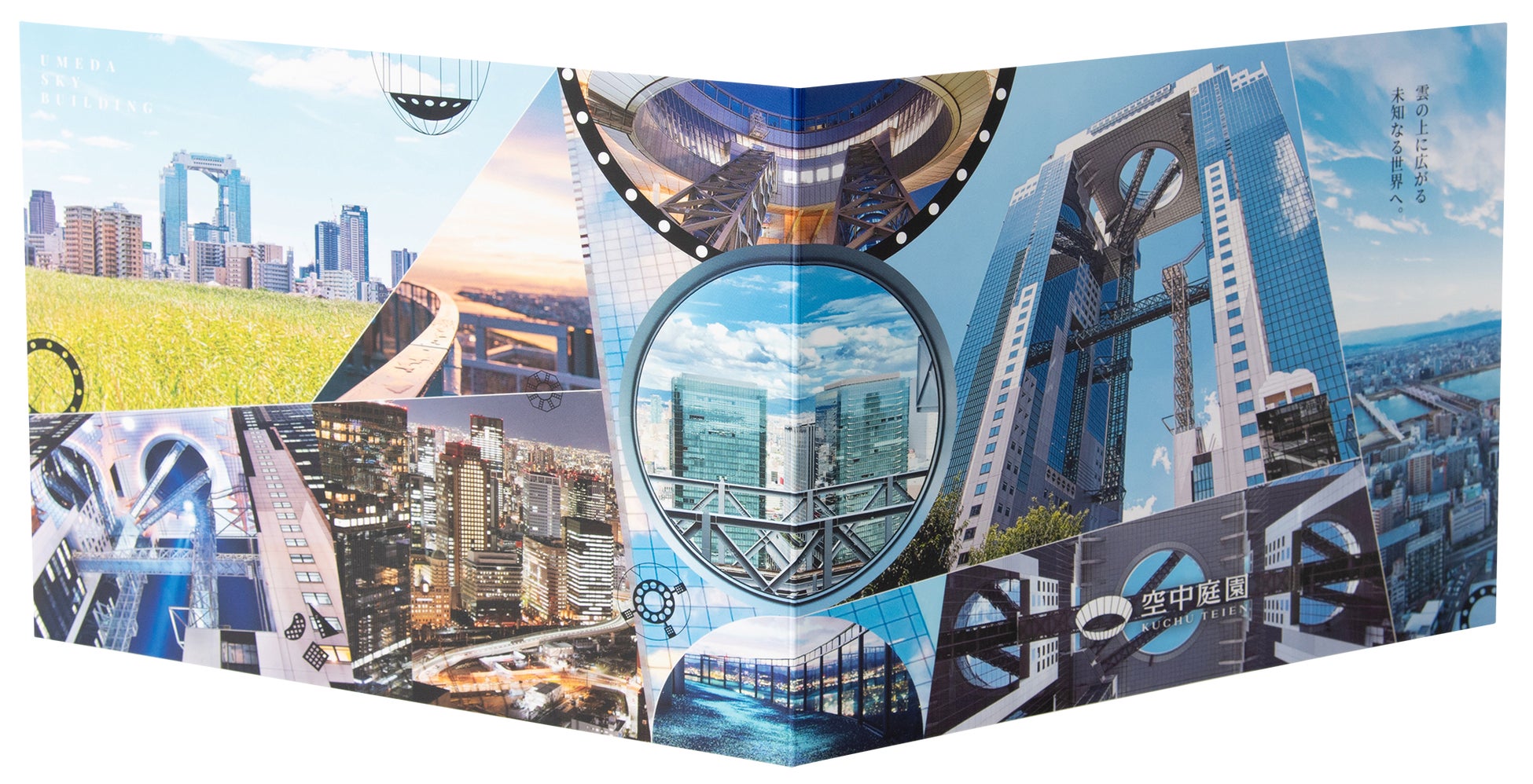 ①梅田スカイビルの象徴的な写真をコラージュしたデザイン。