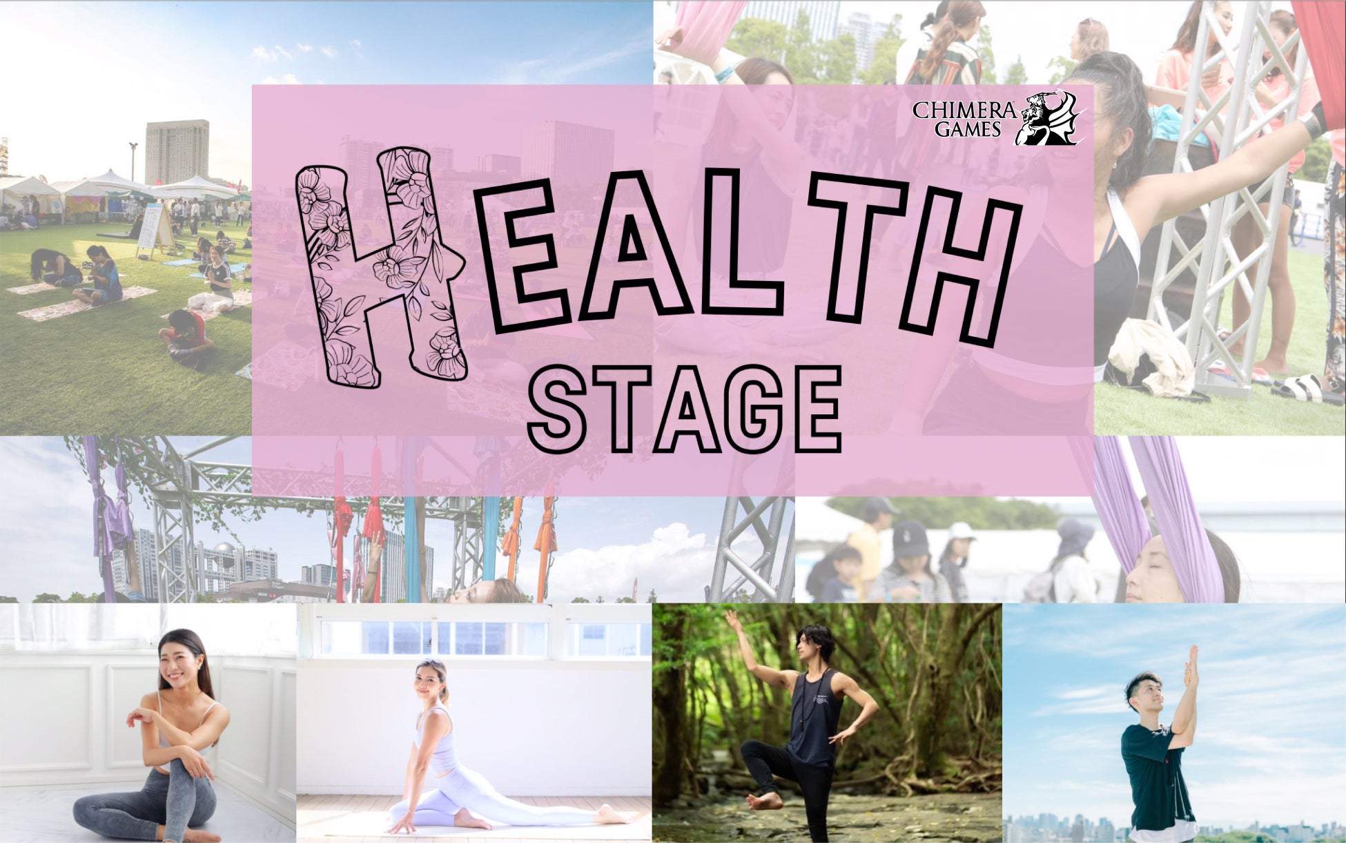 上級者から初心者・キッズ(親子)まで幅広く参加できる豊富なメニューをCHIMERA GAMES VOL.8に新しくできる「HEALTH STAGE」にて体験が可能です。
