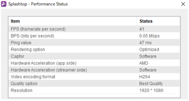 - パフォーマンス表示:フレーム毎秒(FPS)やビット毎秒(BPS)などを表示しリアルタイムにパフォーマンス状況が確認可能