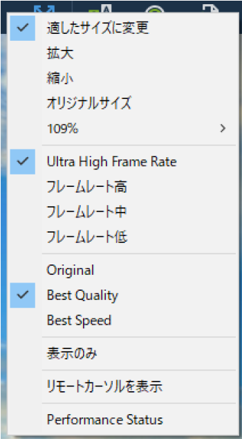 図2・・・自宅などのリモートアクセス元PCのパフォーマンスステイタス状況の確認が可能