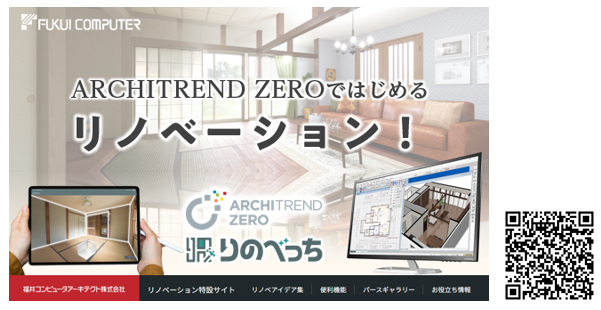ARCHITREND ZERO Ver.10リリースに合わせて弊社公式ホームページに「ARCHITREND ZEROではじめるリノベーション!」と題して、リノベーションに関するナレッジ動画やARCHITREND ZEROの便利機能、セミナー情報、お役立ちコンテンツなどを掲載したポータルサイトを開設します。リノベーション業務に取り組もうとされるお客様に有益な情報を提供していく予定ですので、合わせてご確認ください。