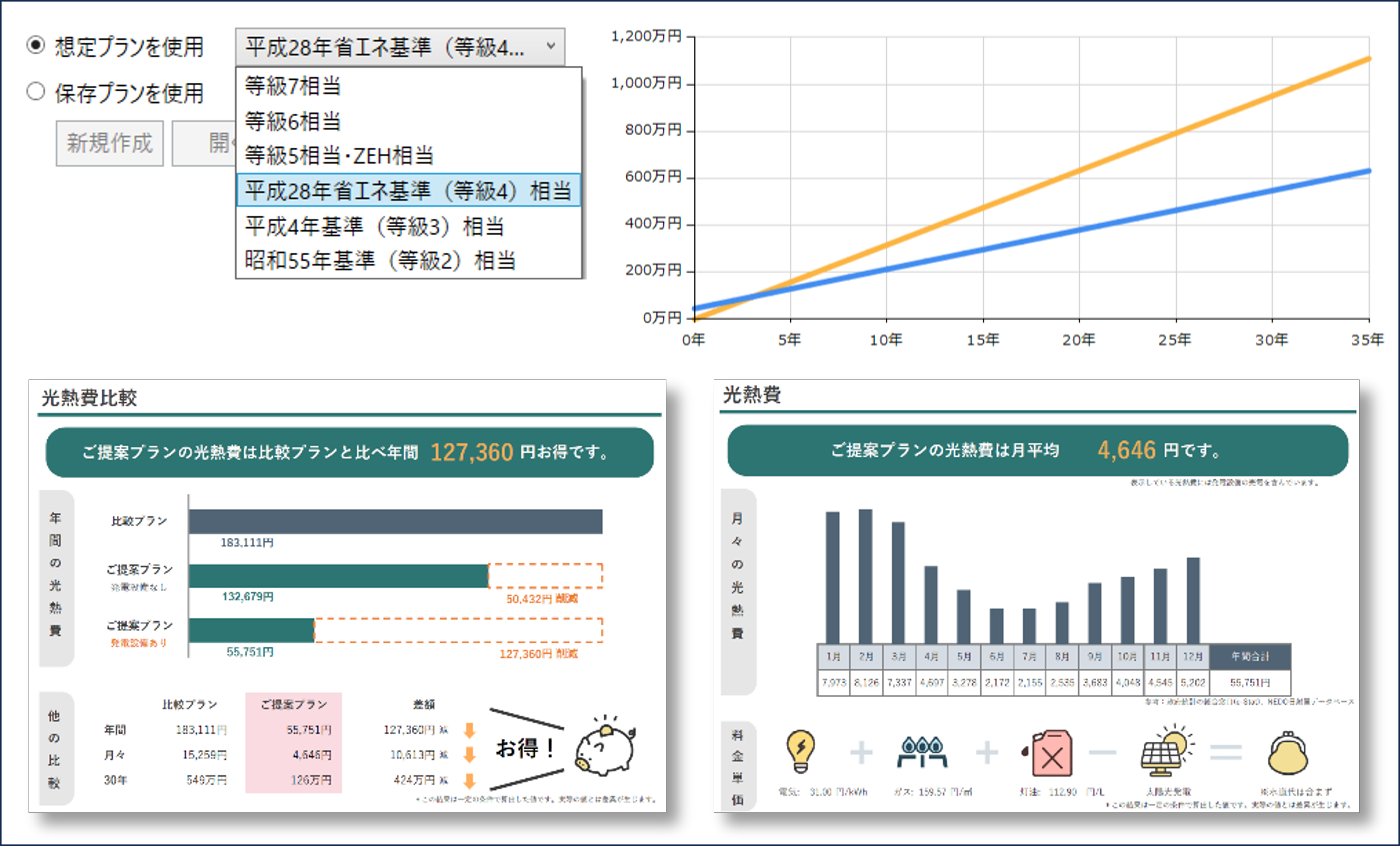 省エネのコスト比較シミュレーションがワンタッチ。提案書テンプレートも刷新して省エネ性能説明義務化対策をサポート。