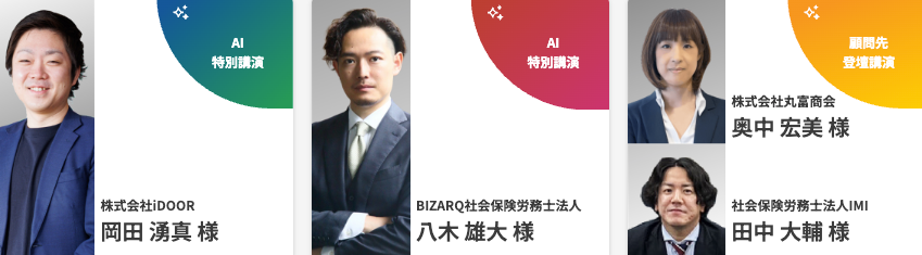 「社労士事務所がサポートする生成AI×DXで変わる顧問先企業の労務と経営」を全体テーマに、社労士業界最前線で顧問先DXに取り組んでおられる全国の社労士事務所の皆様から成功事例をご講演いただきます。