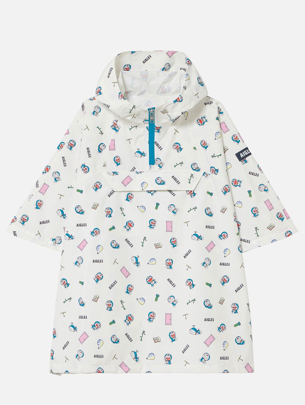 コンパクトに収納できるパッカブルポケットにドラえもんをあしらい、愛らしいアクセントをプラスしたキッズ用ポンチョ。