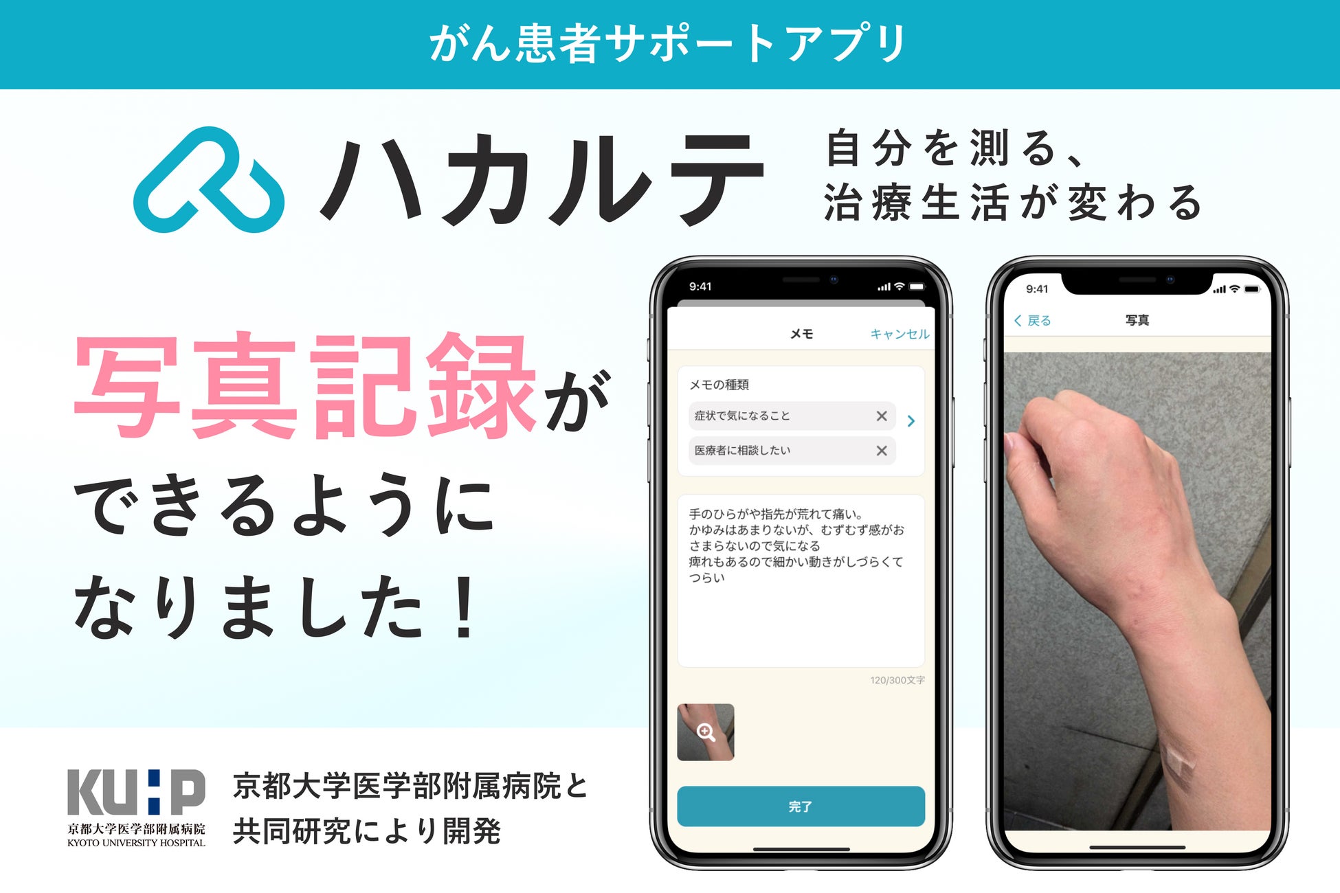 がん治療中のQOL維持・向上のポイントは症状記録 がん患者の治療生活を変える がん患者サポートアプリ「ハカルテ」 写真登録機能を追加し、主体的な治療生活をさらにサポート