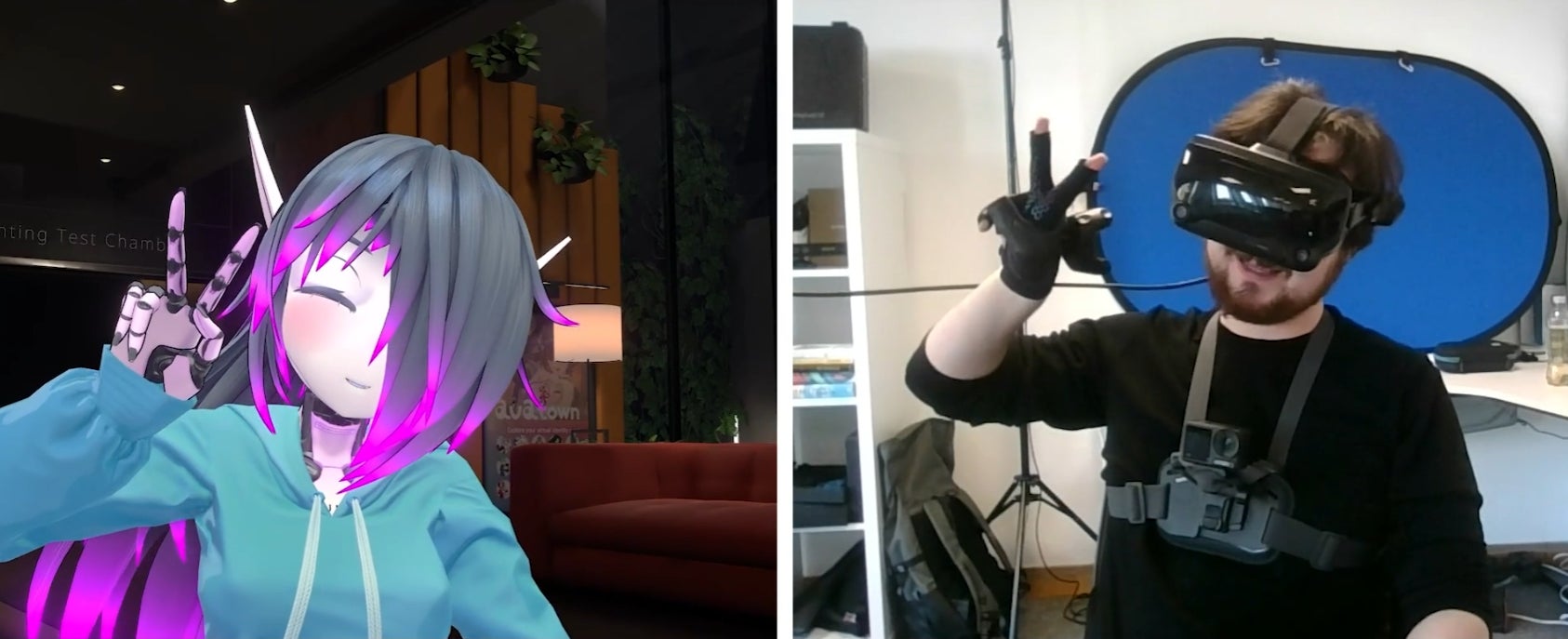 また、従来はSteamVR対応コントローラーのA・B・X・Y・トリガーボタンやアナログスティックで行っていた入力に対して、ハンドジェスチャーを個別に割り当て可能です。この機能によって、コントローラーを持たずにVR空間で移動したり、メニューを出したりできるようになりました。