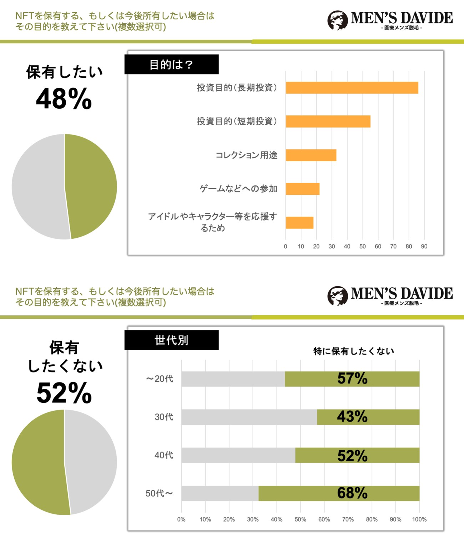 そこで、男性のかっこいいをつくり出すためのメディア「danCE(ダンシー)」では、男性の医療脱⽑クリニック『メンズダビデ( https://davide-cl.com/ )』監修の元、300 ⼈を対象として【暗号資産・NFT に関する調査アンケート】(対象期間:2021 年 12 ⽉ 9〜14 ⽇・インターネット調査)を実施いたしました。