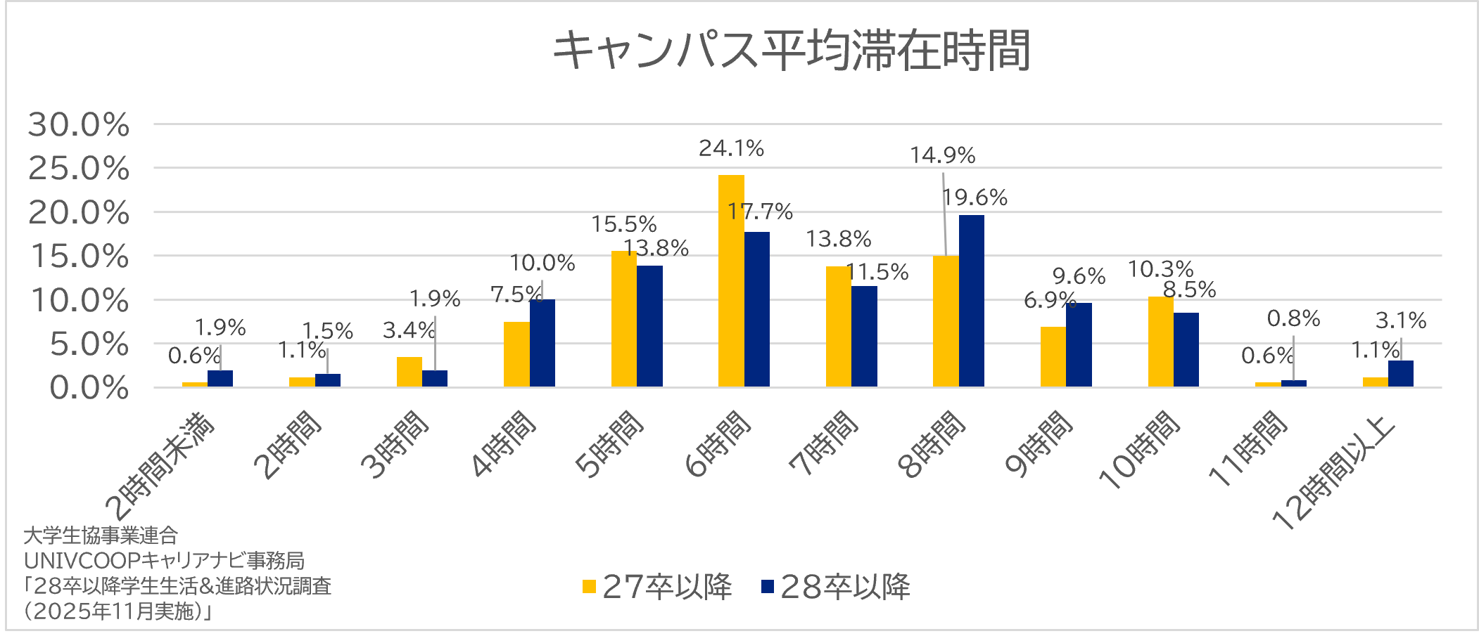 ・<キャンパス平均滞在時間>平均6.8時間。長時間滞在が目立つ。
