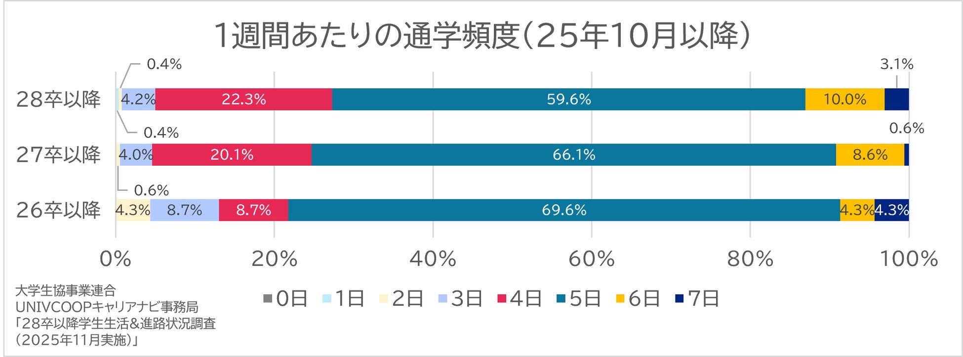大学生協事業連合UNIVCOOPキャリアナビ事務局は、株式会社キャンパスサポート(本社:東京都新宿区、代表取締役:松本純)による運営のもと、「UNIVCOOPキャリアナビ事務局 28卒以降学生生活&進路状況調査(2025年11月実施)」を実施し、その結果を発表しました。事務局では、大学生の就活動向・実態を把握することを目的に、大学生協組合員を対象とした調査を毎年11月に実施しています。