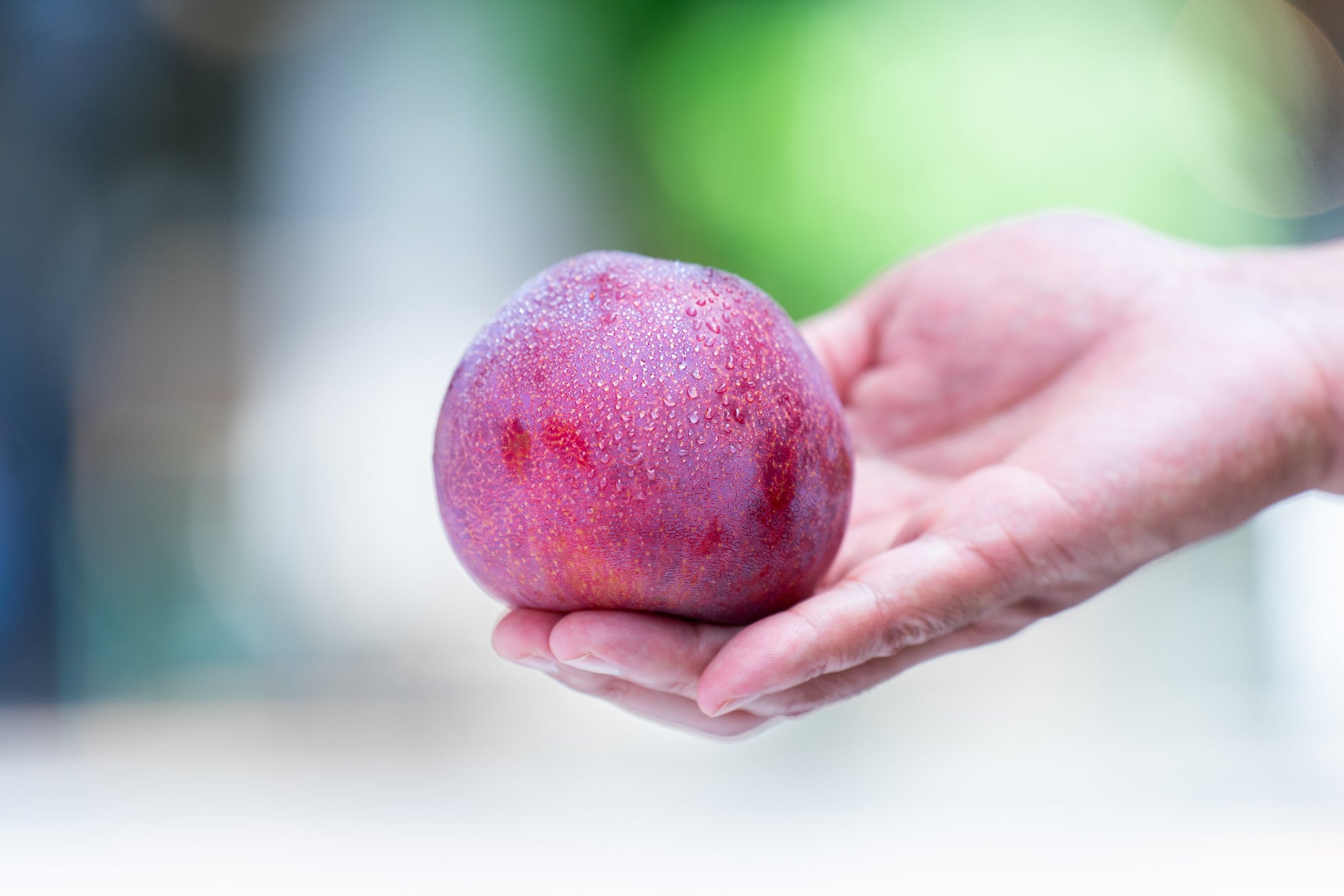 すももの中では特に大玉で、果汁量が驚くほど多くジューシーな高級品種。丸のままかじると、とろける甘みの果肉と酸味がつまった皮の部分が相まって、他の果物では味わえない美味しさです。