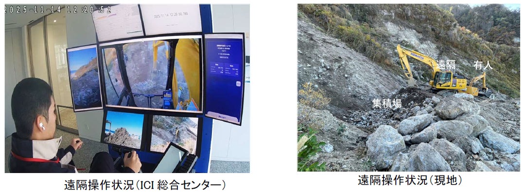 能登半島地震復旧工事で遠隔操作システムによる施工を実証 ~取手市からバックホウを遠隔操作、作業員の安全性を確認~
