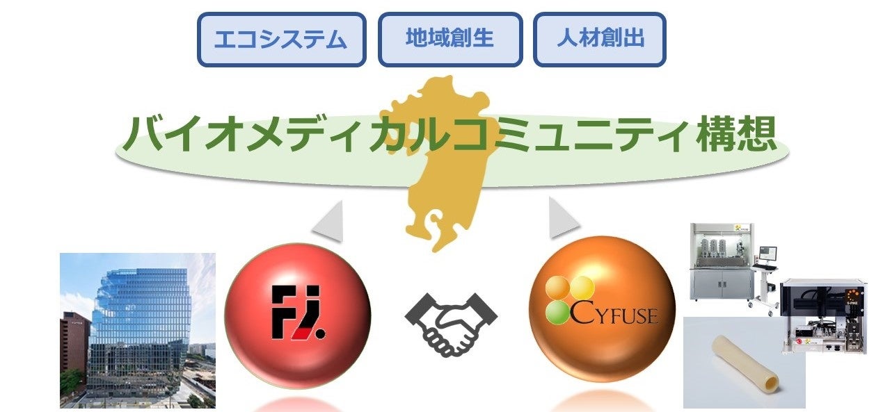 株式会社サイフューズ(本社:東京都文京区、代表取締役:秋枝静香、以下「サイフューズ」)は、福岡地所株式会社(本社:福岡県福岡市、代表取締役社長:榎本一郎、以下「福岡地所」)との間で、再生・細胞医療分野及び教育分野等における事業活動を通じた地域創生を実現することを目的とした業務資本提携をいたしました。