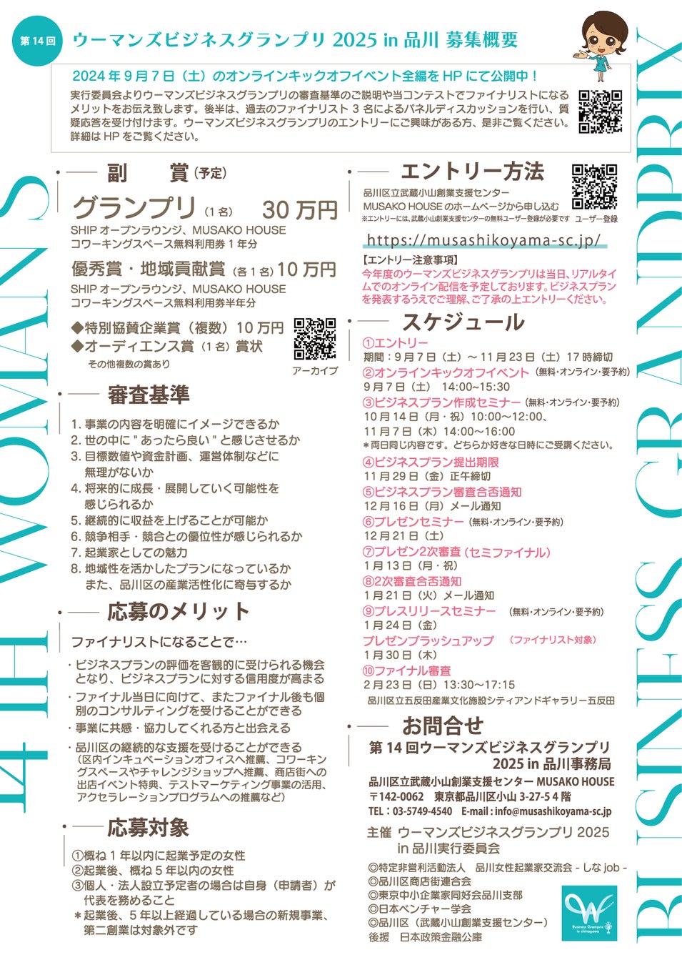 (品川区、品川区立武蔵小山創業支援センターなどにより組織)お問い合わせ第14回ウーマンズビジネスグランプリ2025 in 品川 実行委員会