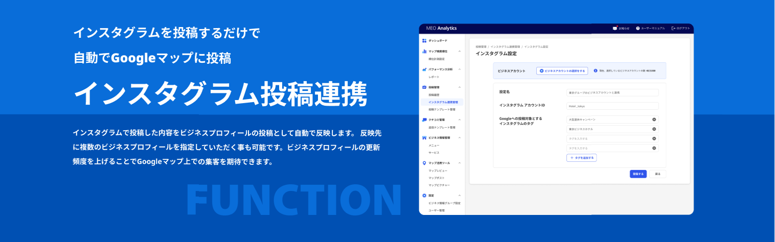 複数店舗あるGoogleビジネスプロフィールを一元管理するツール「MEO Analytics」Instagramとの連携、FCやエリア担当者向け店舗グループ管理機能の追加リニューアルのお知らせ
