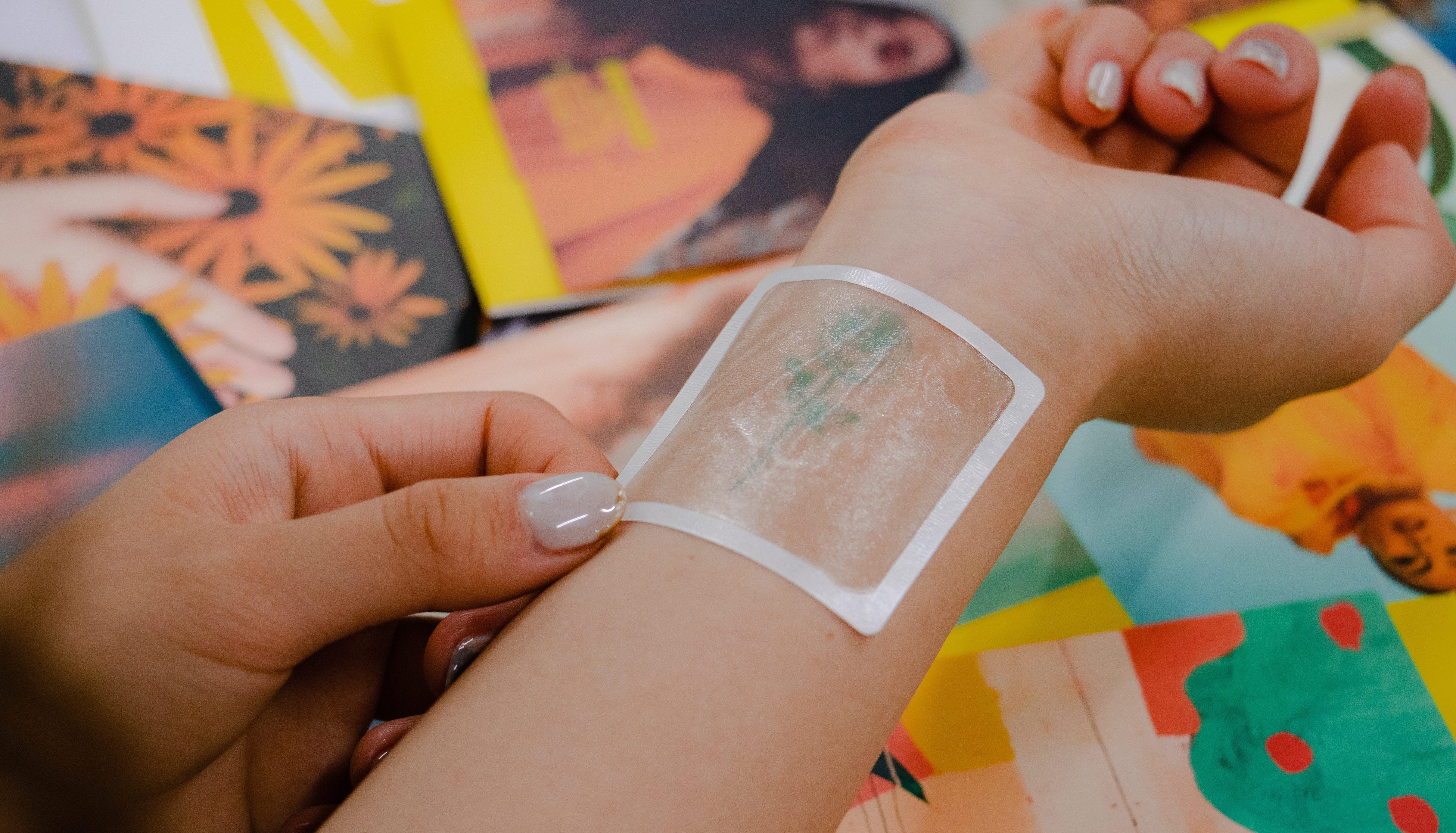 Inkboxは、肌の表皮に特許取得したフォーミュラを浸透させることで、オーガニックの成分がタンパク質と反応し、肌を黒/紺色に変色させます。伝統的なタトゥーは、真皮まで浸透するため消えることはありません。それに対し、Inkboxは表皮にしか浸透しないため、肌が再生するサイクルである約2週間で角質とともに薄れていきます。そのため従来のタトゥーシールと違い、水に濡れてヨレたり、1日で消えてしまう心配はありません。また本物のタトゥーのような質感を再現できます。またInkboxのインクは、自然な原料で作られており植物由来のため安全です。