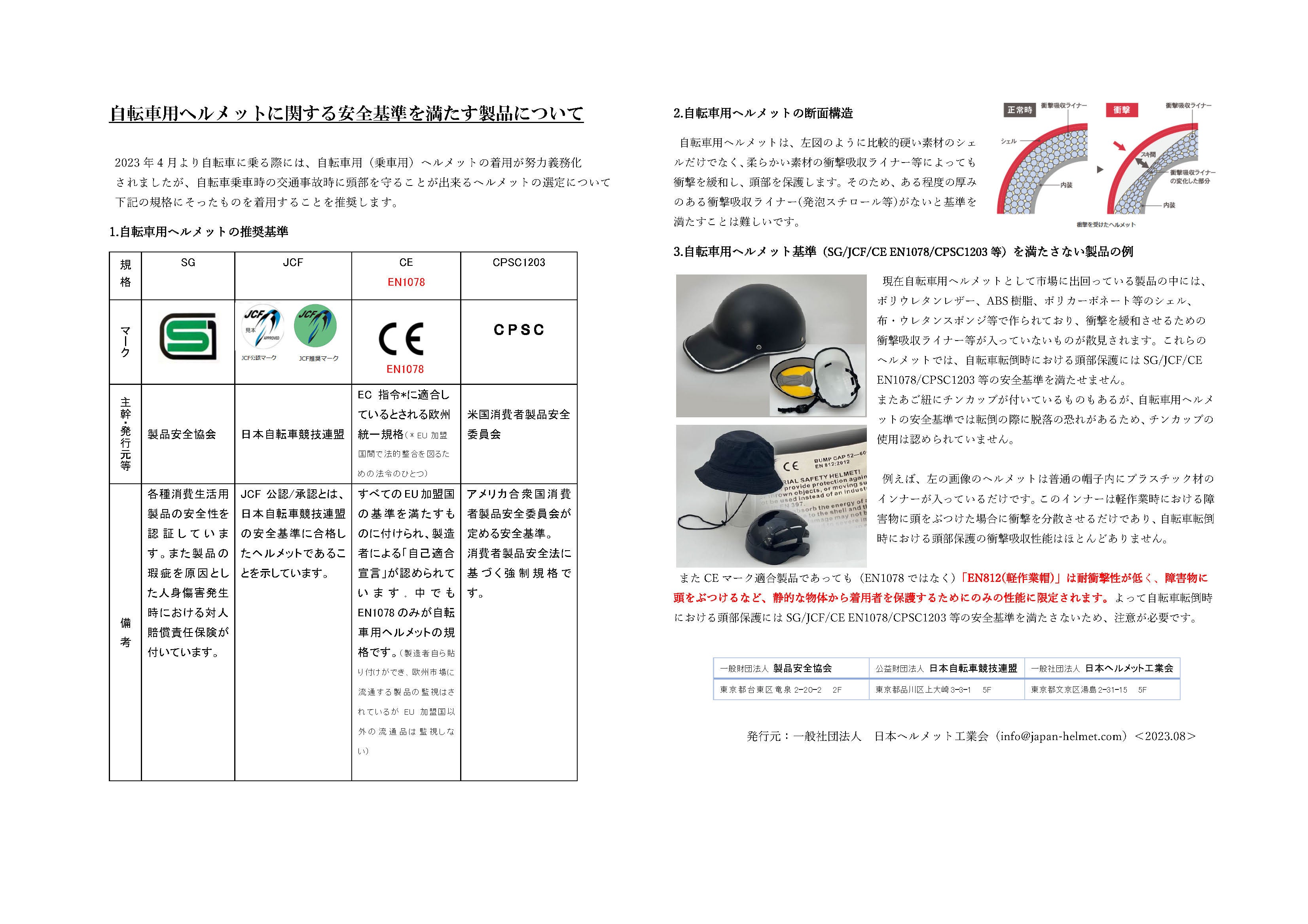 *1 自転車用ヘルメットに関する安全基準を満たす製品について(一般社団法人日本ヘルメット工業会発行)
