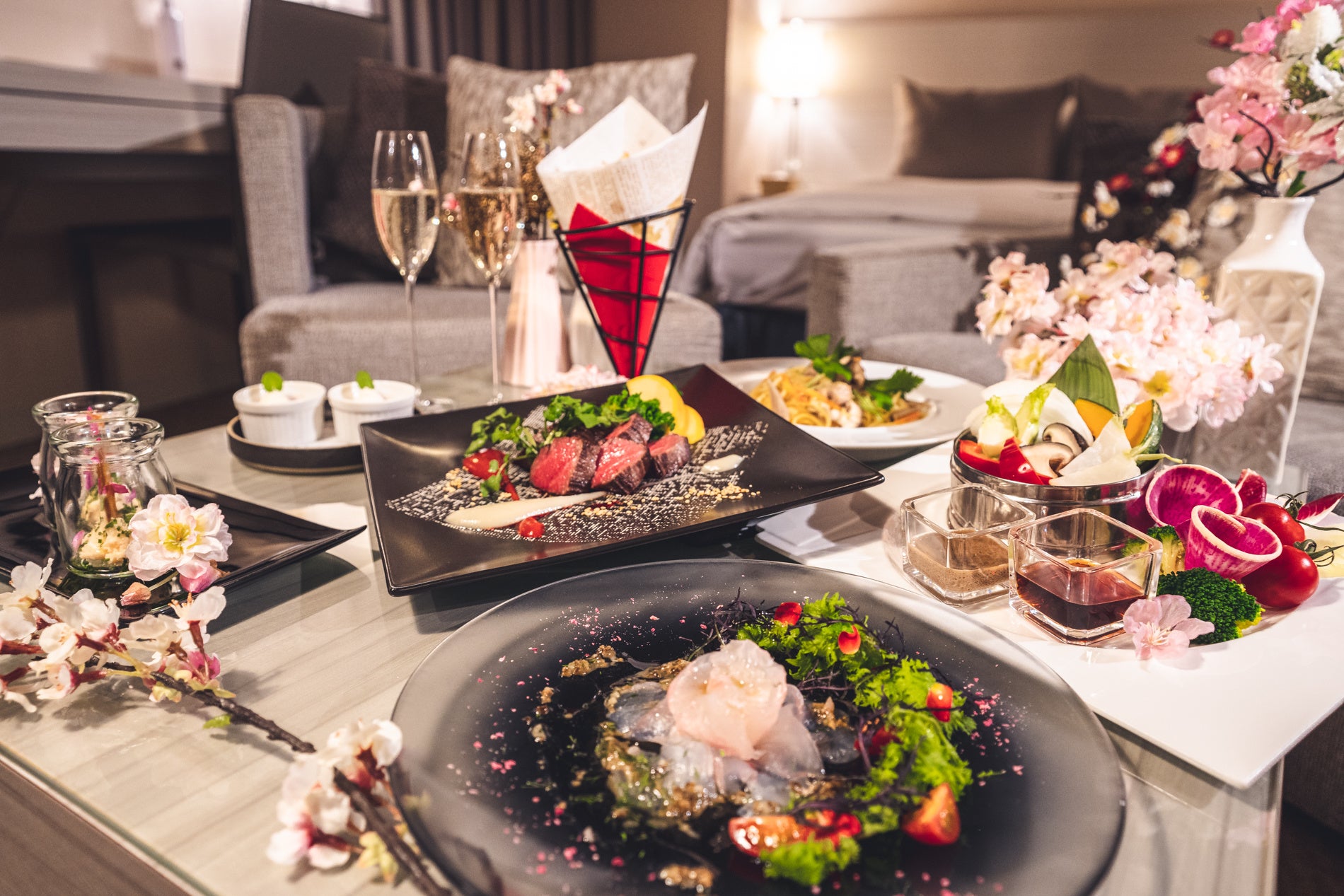“春のインルームダイニング” 客室で楽しむ3時間ドリンクのフリーフロー!COCONOMA Season Diningの食事で贅沢な2人時間