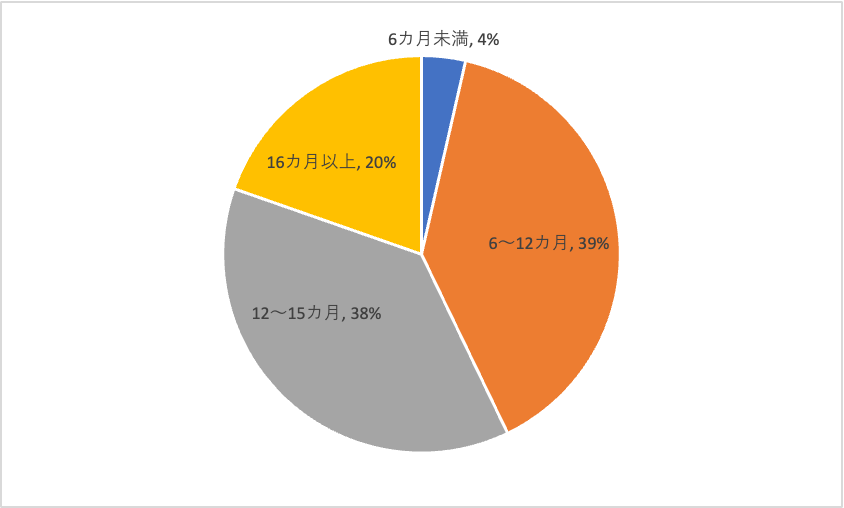 この調査では、育休期間が6〜12カ月は39%、12〜15カ月は38%でほぼ同じ割合となりました。2019年に当社が調査したワーママ100人アンケート~育休編~(https://www.mamalibra.jp/corp/article/column/28.html)では、育休を「取得していない」を含む6カ月未満が30%でしたが、今回は4%。前回は1年以上取得した人は全体の3割ほどでしたが、今回は6割ほどと大きく増加し、育休期間が長期化していることが分かりました。
