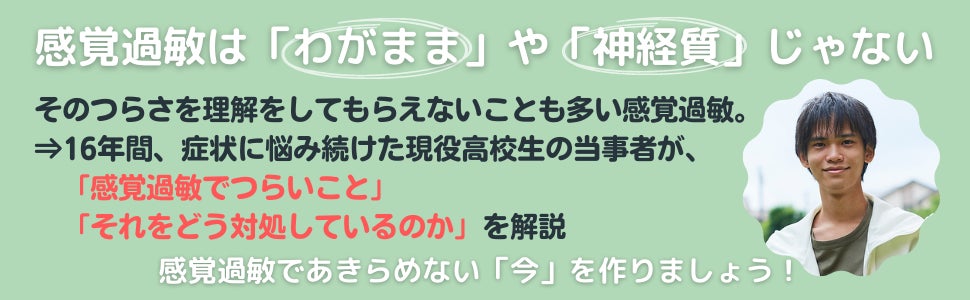 感覚過敏の課題の1つは、目に見えず理解されにくいことです。感覚過敏について1人でも多くの人に知ってもらいたいと願い、感覚過敏の当事者であり、感覚過敏研究所の所長を務める加藤路瑛が執筆いたしました。