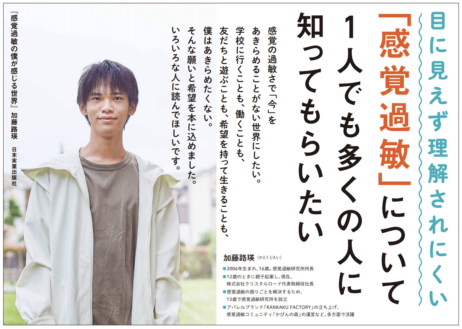 「世界は刺激が多すぎる」感覚過敏の当事者として感覚過敏研究所を率いる16歳の所長、加藤路瑛の書籍『感覚過敏の僕が感じる世界』出版のお知らせ