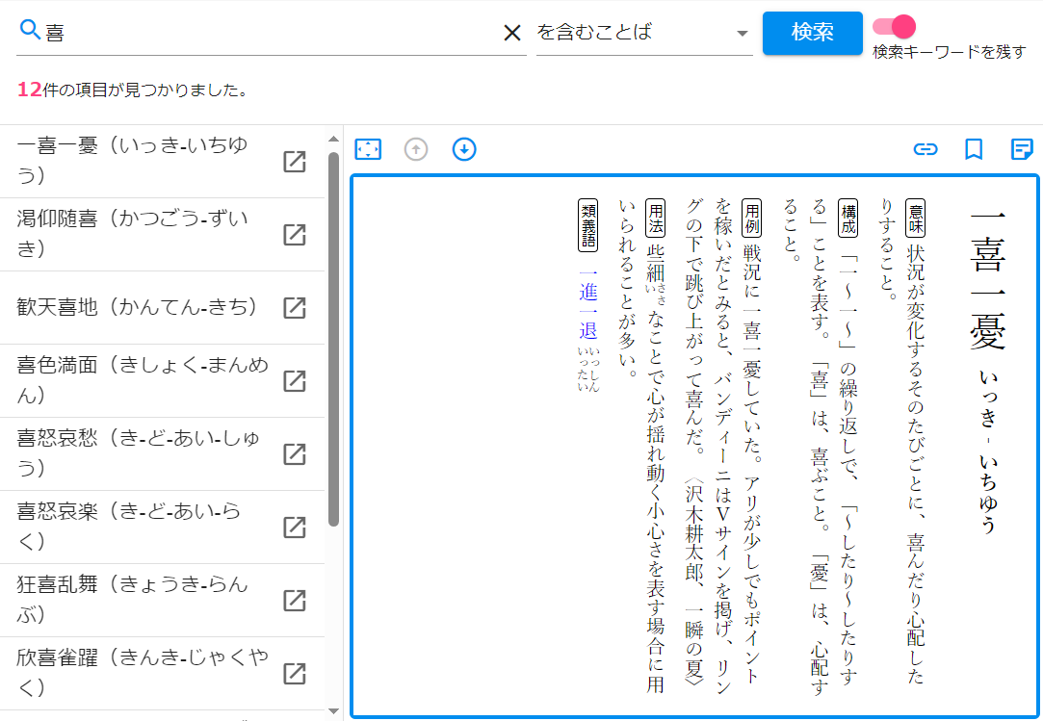 ・意味解説では、もとになる二字熟語や、一字一字の漢字の意味までていねいに解説。