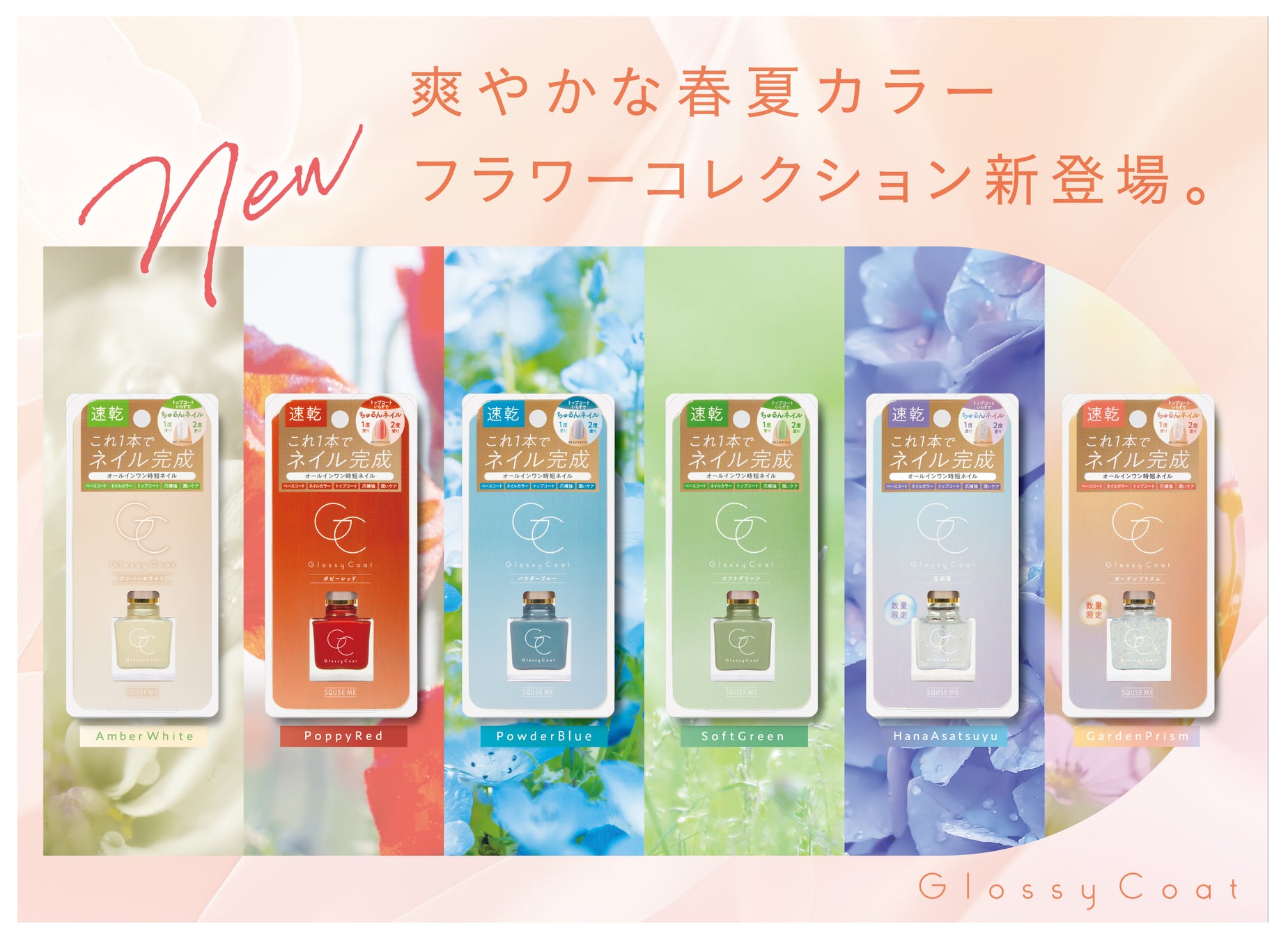 株式会社スキューズミー(本社:東京都台東区、代表取締役:小林義典)は、累計販売数172万本※を超える人気のオールインワンネイルシリーズ「グロッシーコート」から、春夏ファッションにマッチする限定色を含む新色を、2025年3月28日(金)より発売いたします。※2月28日(金)より一部先行発売。※グロッシーコートシリーズ弊社出荷実績より(2024年11月時点)