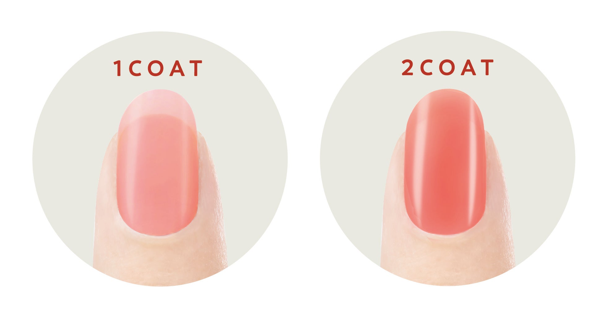 1度塗りでほんのり透け感、2度塗りでしっかり発色。重ね方次第でお好きな発色が楽しめます。