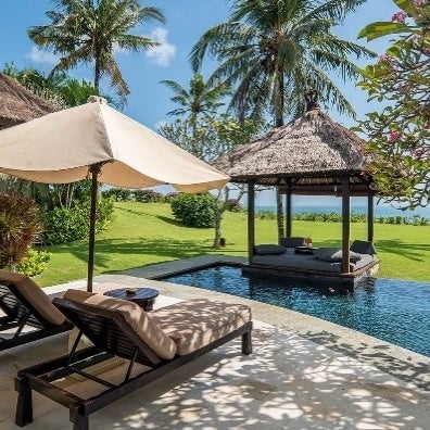 アヤナ ヴィラズ バリは、フォーブストラベルガイドの5つ星リゾートにも6年連続で認定されている、崖の上の緑豊かなガーデンに囲まれた最上級の贅沢を提供するリゾートです。78棟のヴィラは、広大な敷地の中に美しくひっそりと佇み、各ヴィラには広々としたベッドルームとバスルーム、独立したリビングルーム、プライベートプール、海を見渡すことのできる豪華なバスタブ、トロピカルガーデンに囲まれた屋外ガゼボなどが備わっています。