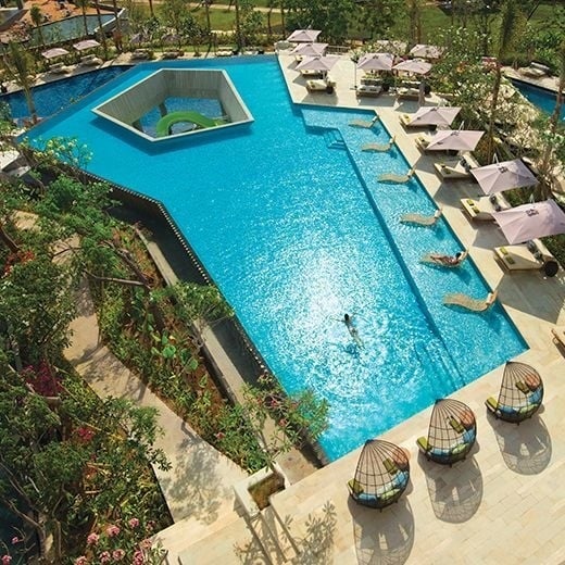 リンバ by アヤナ バリは、自然豊かな森に囲まれ、自然からインスピレーションを得たデザインとスタイリッシュなインテリアが特徴の403室のラグジュアリーファミリー向けリゾート施設です。