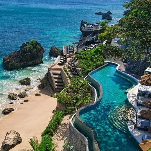 アヤナ ホスピタリティのベースとなるアヤナ エステート バリは、アヤナ ホスピタリティ施設のリブランディングにより、新たなスタートを切りました。ジンバランの崖の上に位置し、トロピカルガーデンと美しいサンセットを臨む90ヘクタールのリゾートは、森と海に囲まれ、自然、文化、ウェルビーイングを堪能することができます。