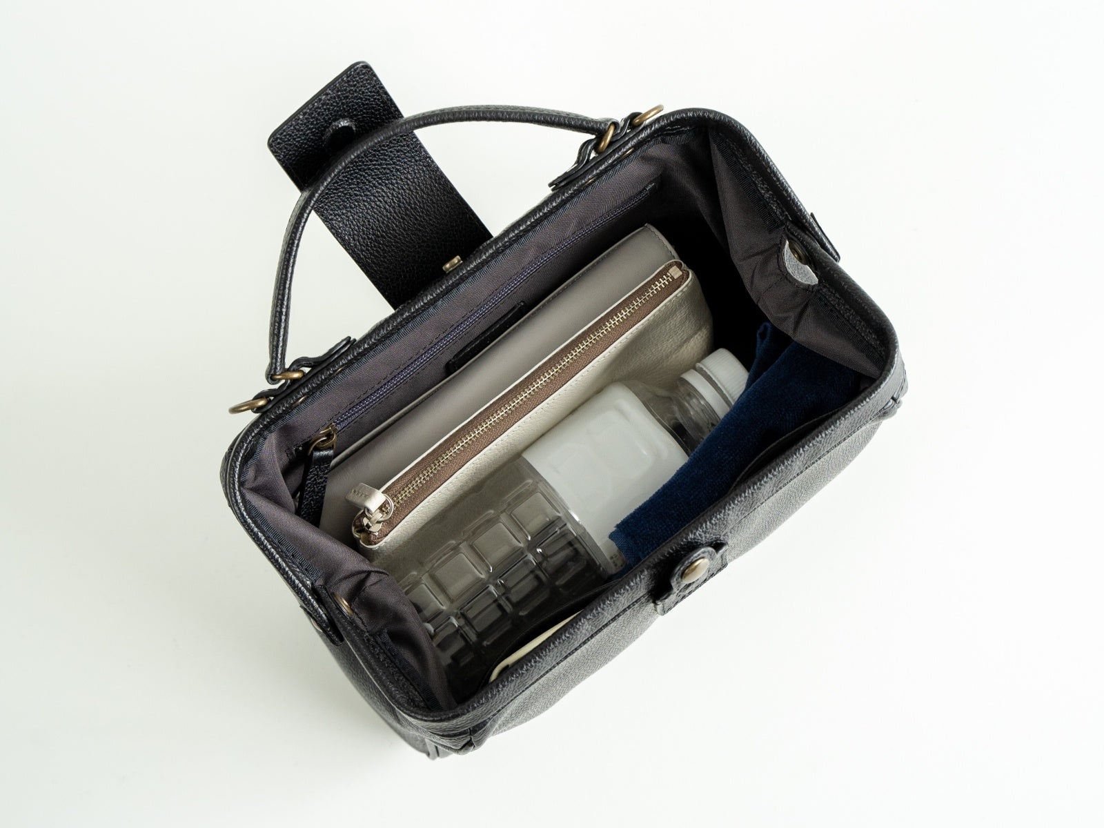 アトリエヌウのコンセプトは「シック&ナチュラル-素材に普遍美を-」。時代を超えて愛される普遍的なデザインや素材をベースに、使う人のライフスタイルに優しく寄り添うブランドを目指しています。バッグや財布などのさまざまなアイテムを展開していますが、ブランドの象徴になっているのが「パーセル」シリーズのバッグ。口枠デザインが特徴で、その形状がアメリカのダレスバッグに似ていることから「ダレス」と名づけられています。ガマ口のように開口部が広く開くので使い勝手がよく、それでいてクラシックかつエレガントな佇まい。さまざまなオケージョンに対応することから、幅広い世代から支持されている人気シリーズです。