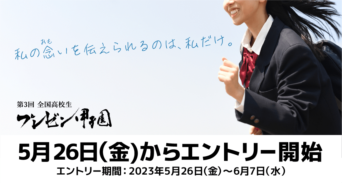 『念い(おもい)を一番伝えられるのは、誰だ? 』第3回 全国高校生プレゼン甲子園 5/26(金)よりエントリー開始!