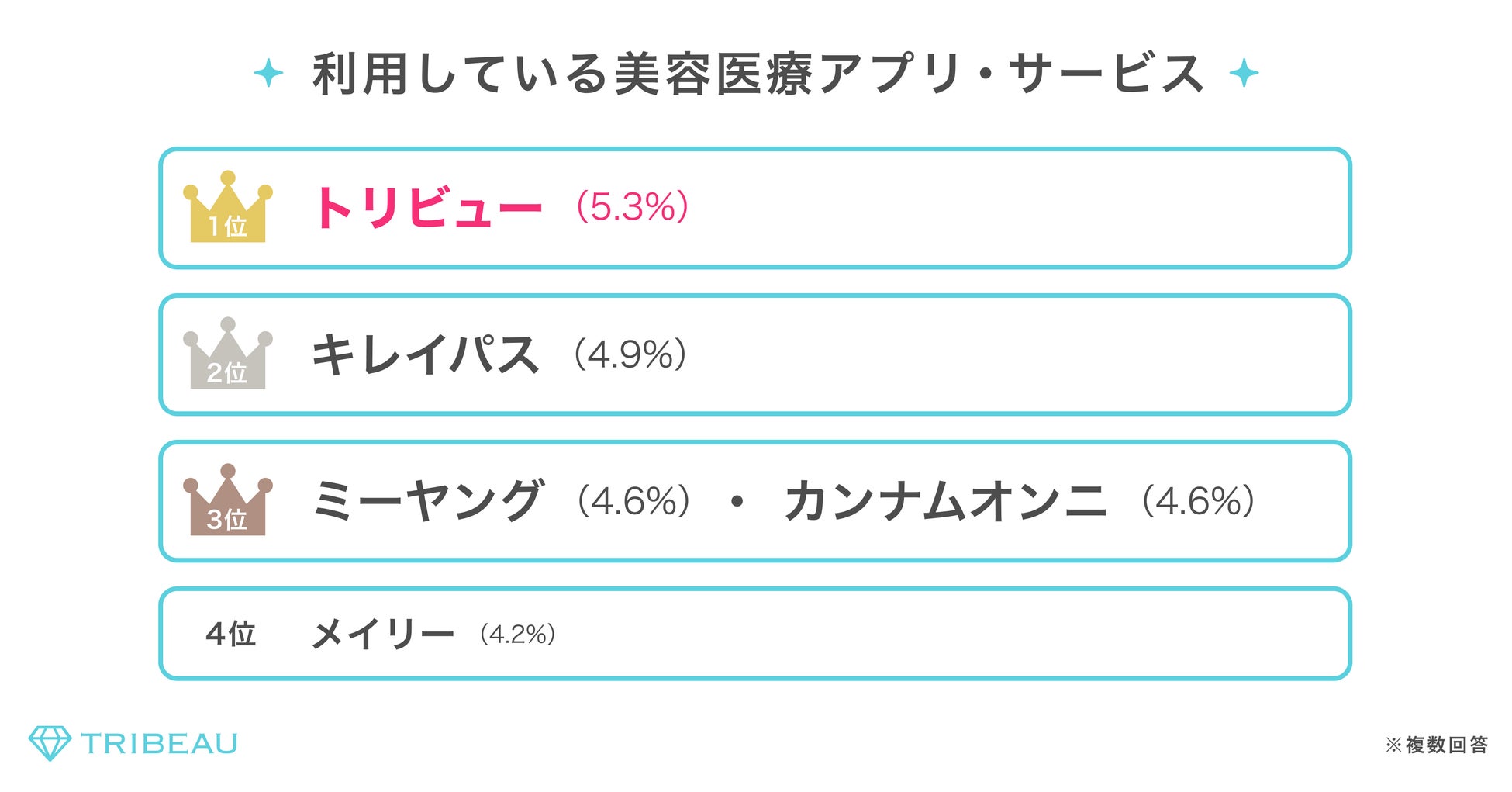 ・利用している美容医療のアプリ・サービスについて聞いたところ、「トリビュー」が一番利用されている美容医療のアプリ・サービスであることが分かった。