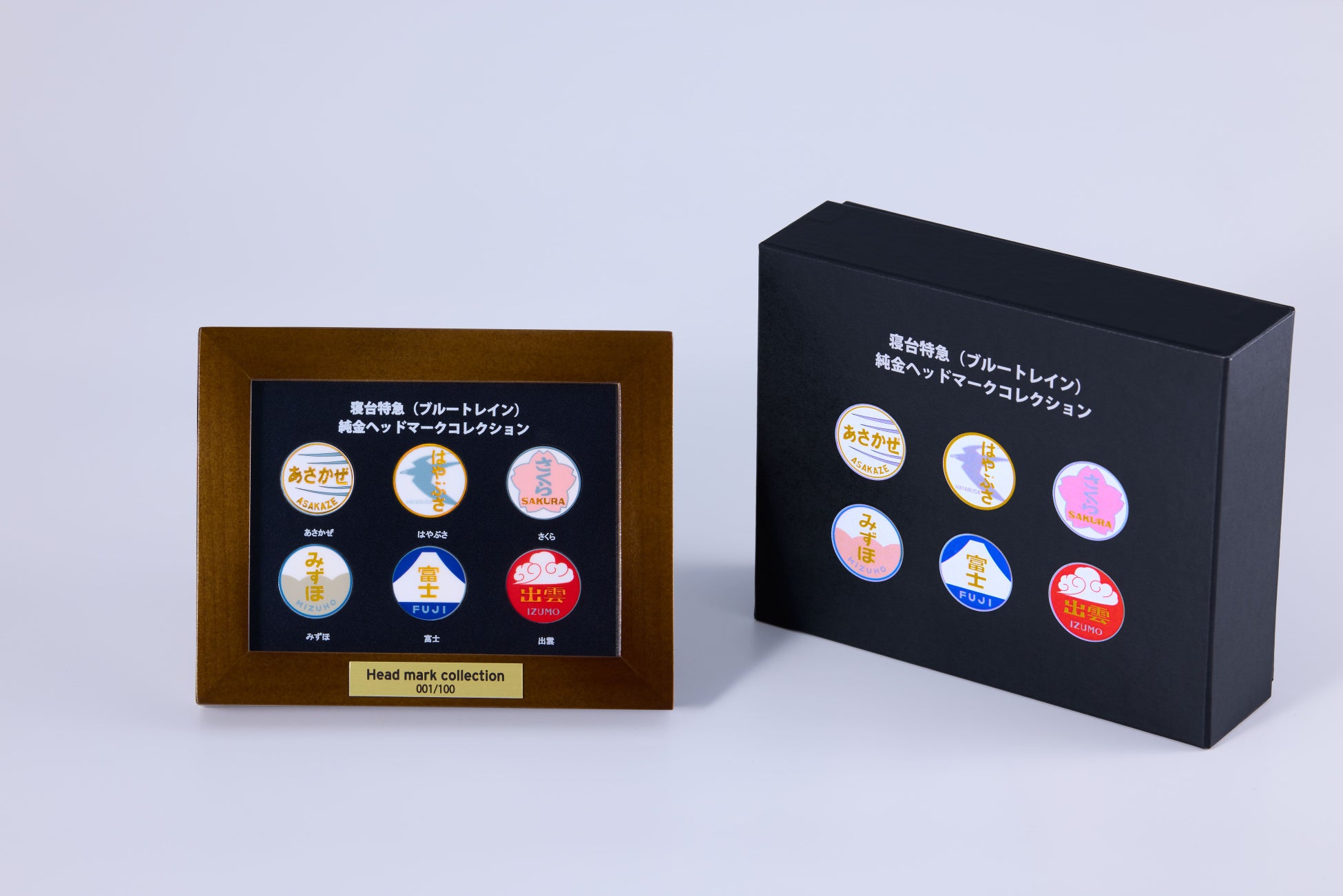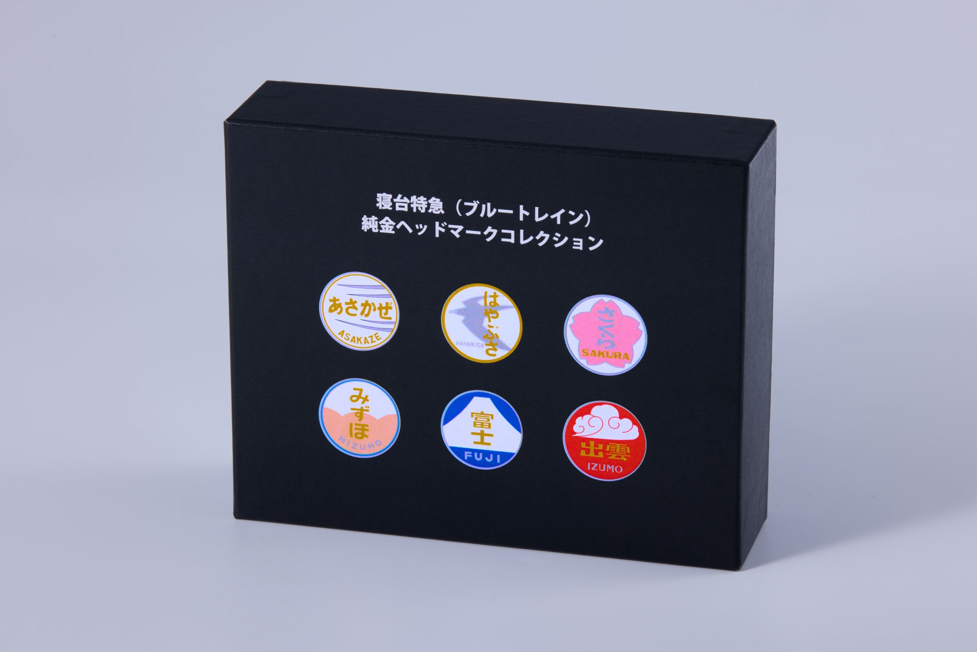 2015年のブルートレイン廃止から間もなく10年。思い出のブルートレインのヘッドマークが純金で登場!ブルートレインの中でも特に人気の6種類がセットになった豪華商品を数量限定で販売します。