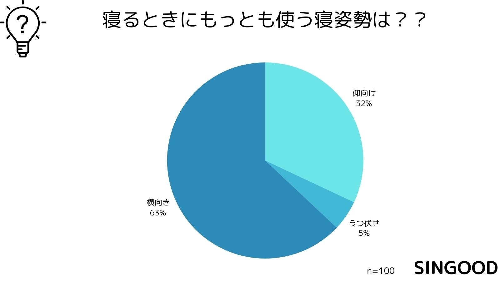 100人にアンケートを実施したところ、横向き寝で寝る方が多い結果となりました。