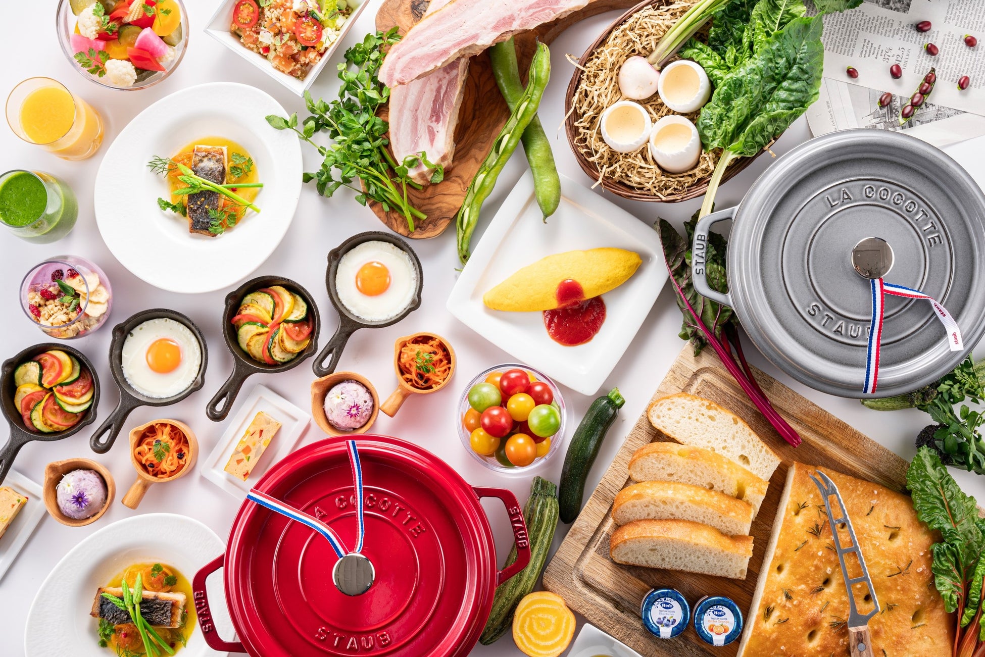 「いろいろな野菜を、もっとおいしく、もっとデイリーに。」を新たなテーマに、地中海と似た気候を持つ三浦半島のフレッシュな野菜を取り入れたデリカテッセンやブランド卵を使用した卵料理、白河高原ポークの自家燻製ベーコンなどこだわりの食材をご用意いたします。また、今回からホテルで焼き上げる自家製パンも加わり、より豊かなメニューで皆様の朝のひとときを彩ります。色鮮やかなイタリアのマルシェをイメージした朝食をお楽しみください。