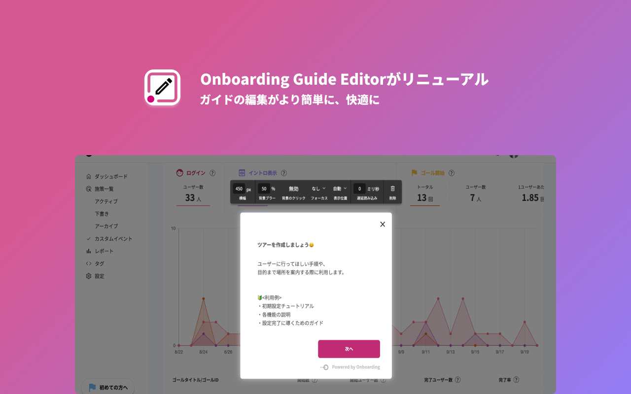 UI/UX改善SaaS「Onboarding」、より早く簡単にガイドを作成できる編集画面にリニューアル!