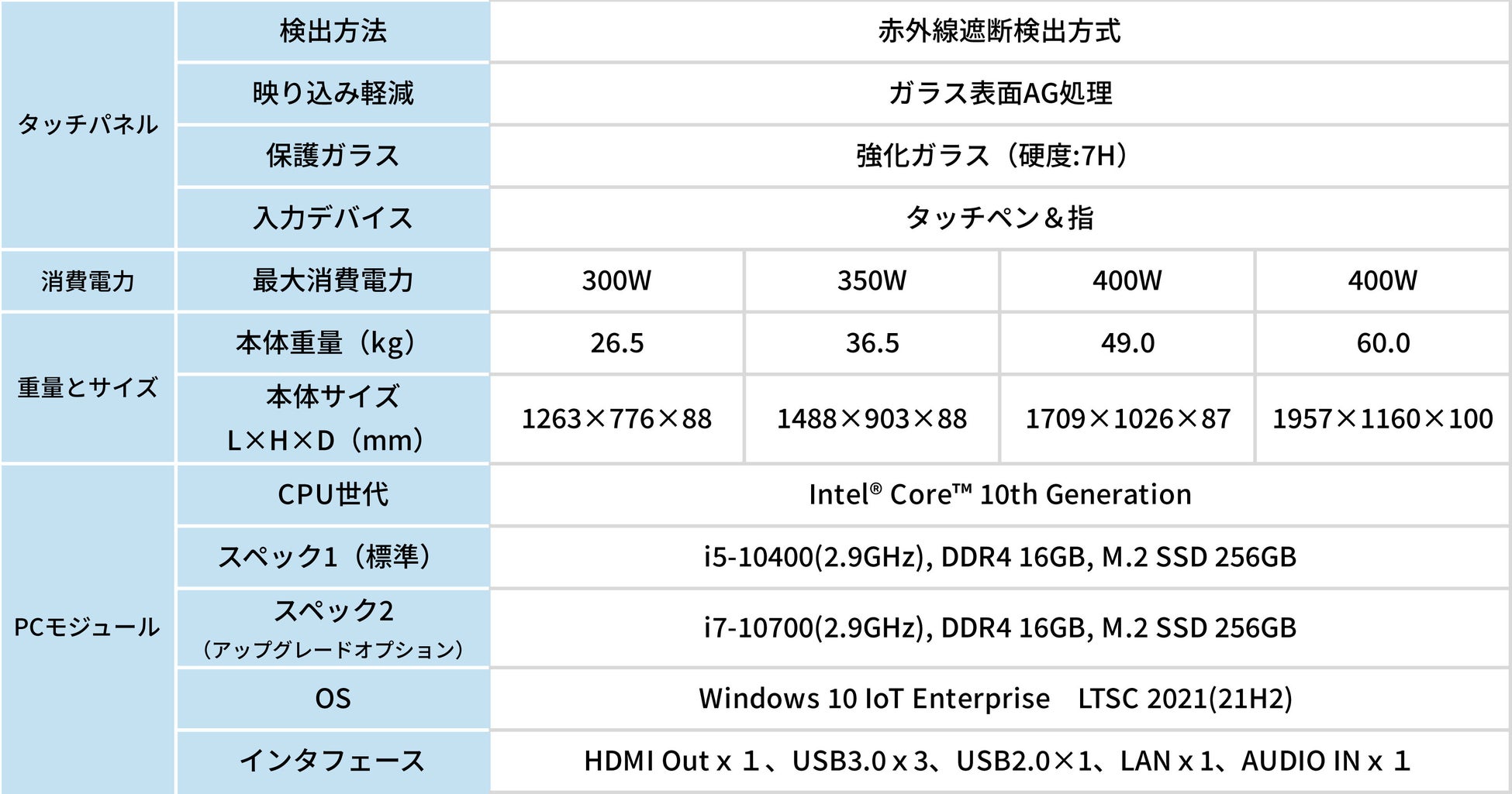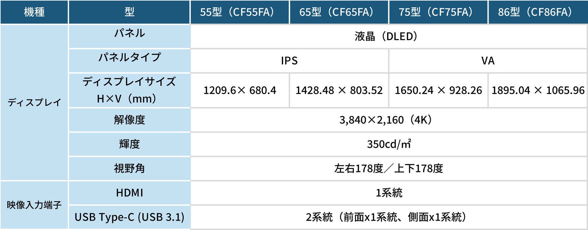 画面サイズ:55型、65型、75型、86型