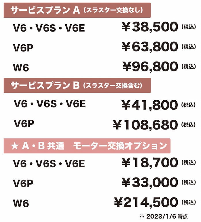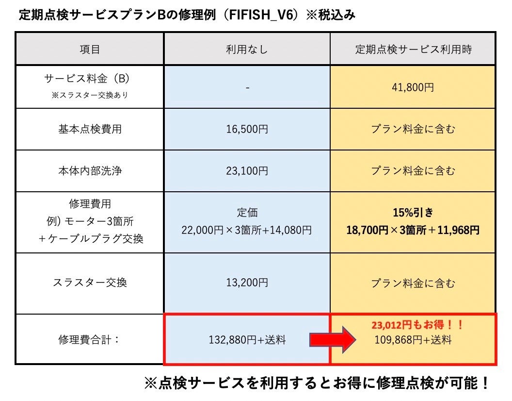 [参考]定期点検サービスを利用して、モーターの修理交換3箇所分をした場合の料金例
