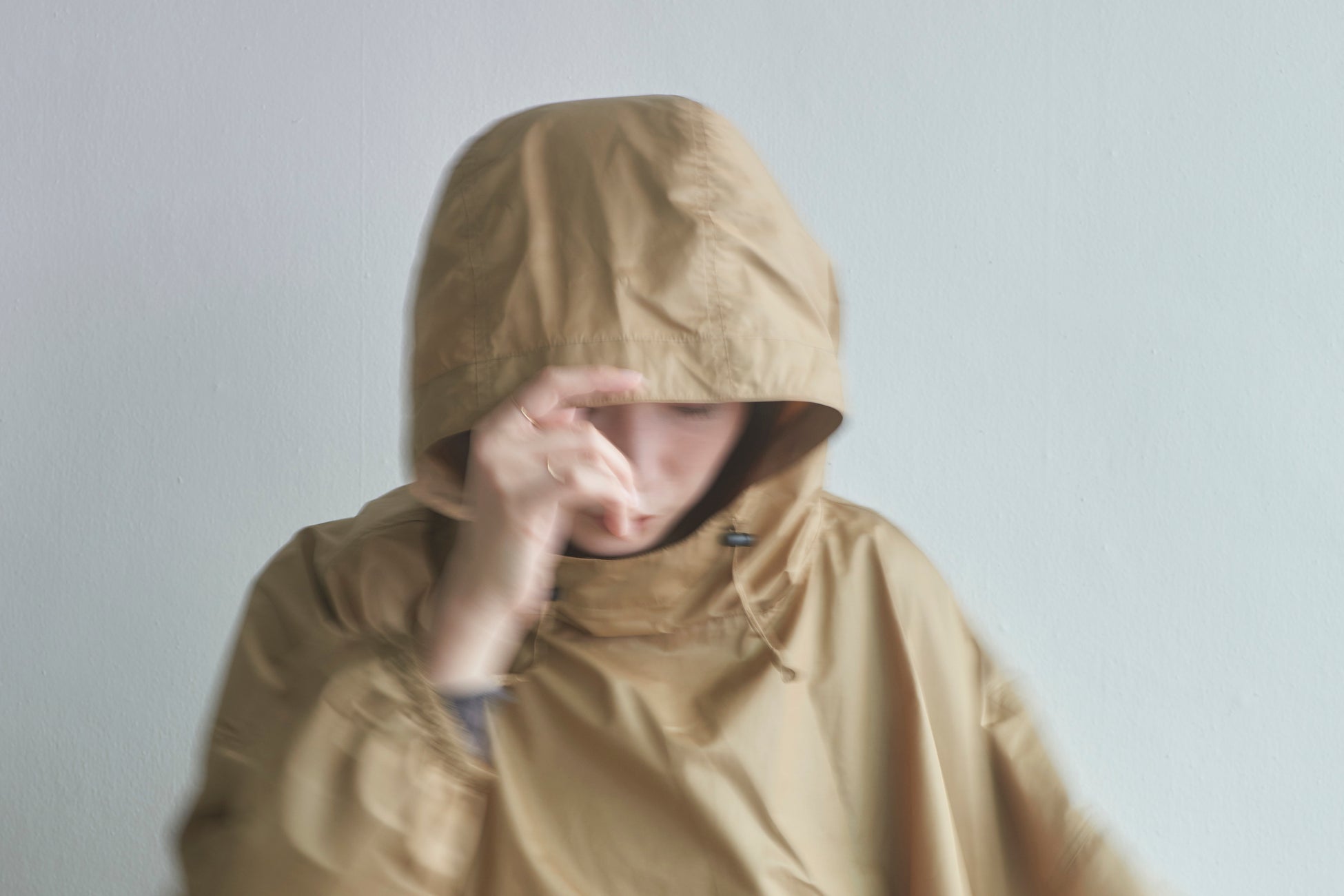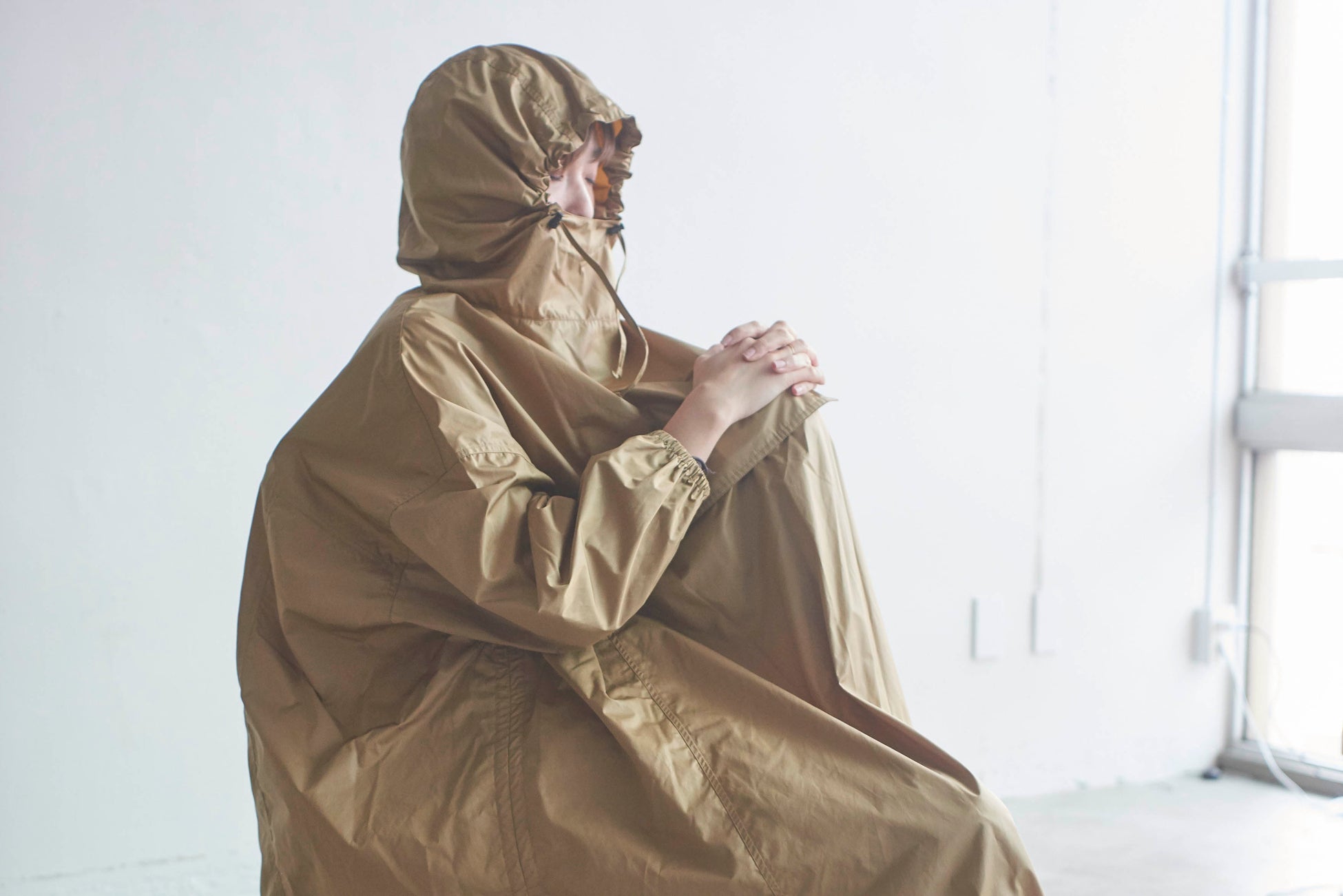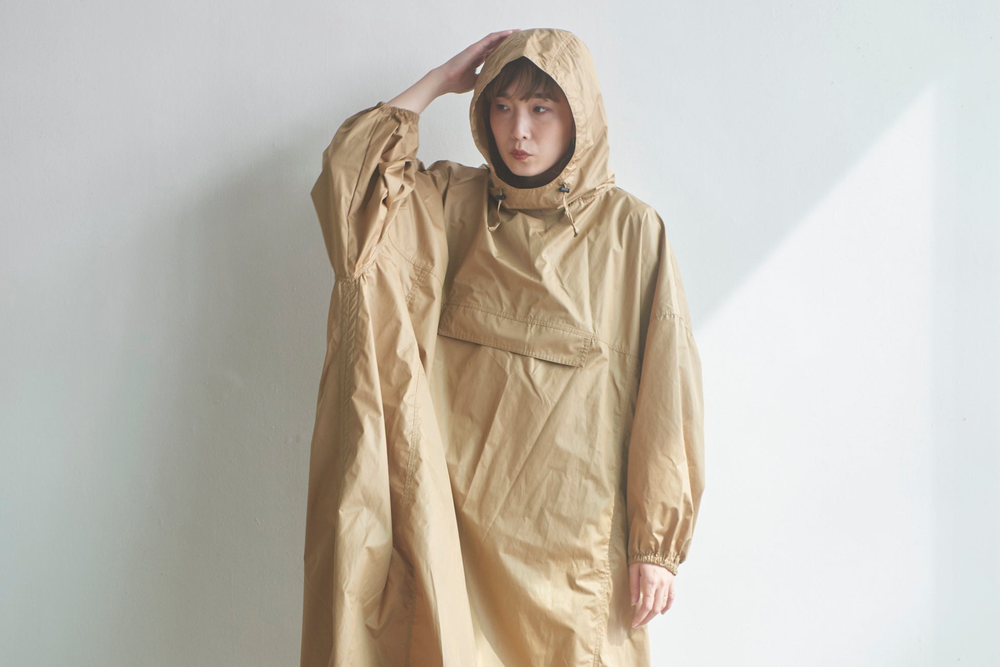 アウトドアやレインコートでも使える、ファッションを纏うかのようなよもぎ蒸しポンチョ。