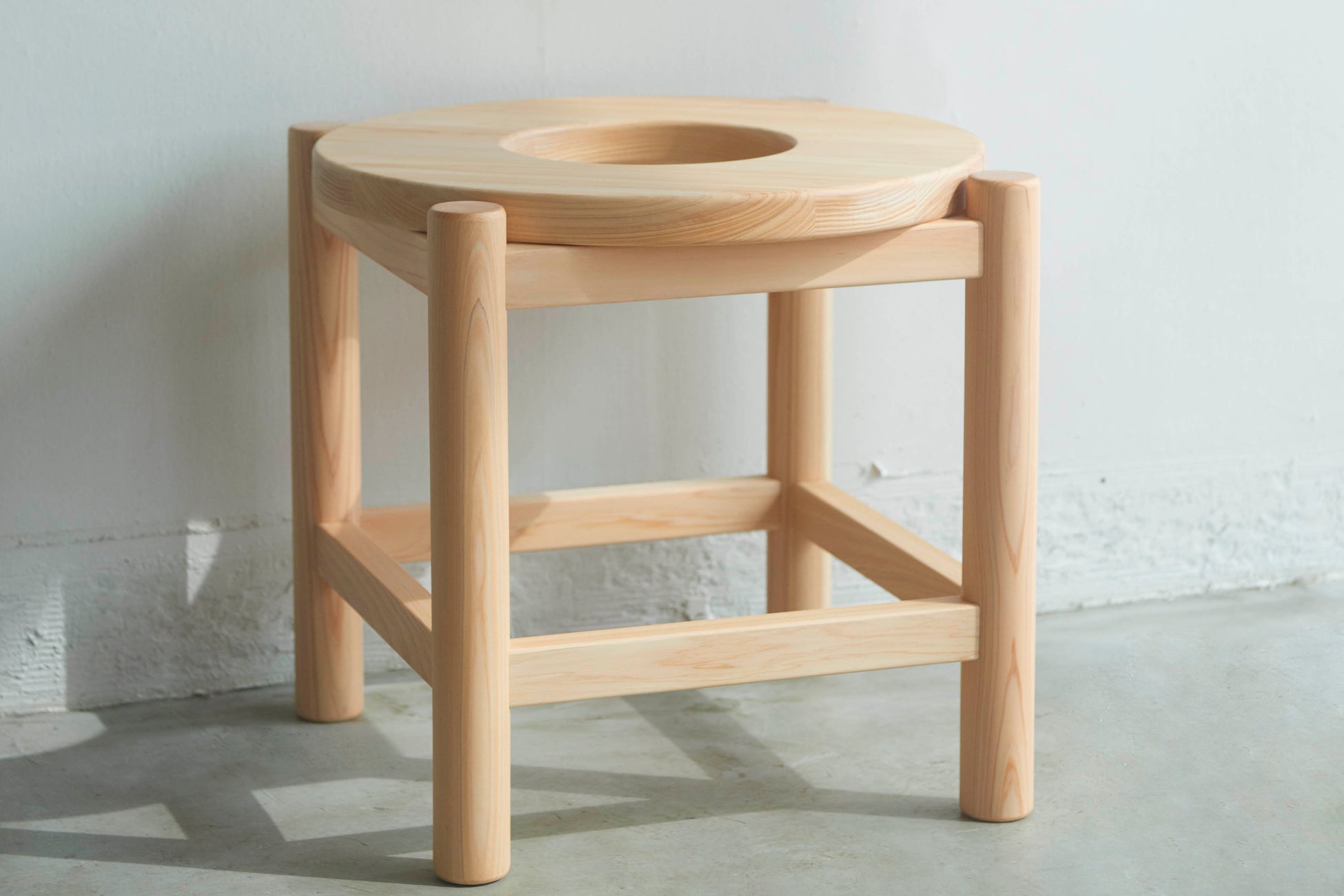 国産ヒノキを贅沢に使用した、よもぎ蒸し用の椅子(背もたれ無し)です。大きくとった座面は、お好みの姿勢でよもぎ蒸しを満喫するのに最適。座面を交換するとスツールやオットマンへと変身します。